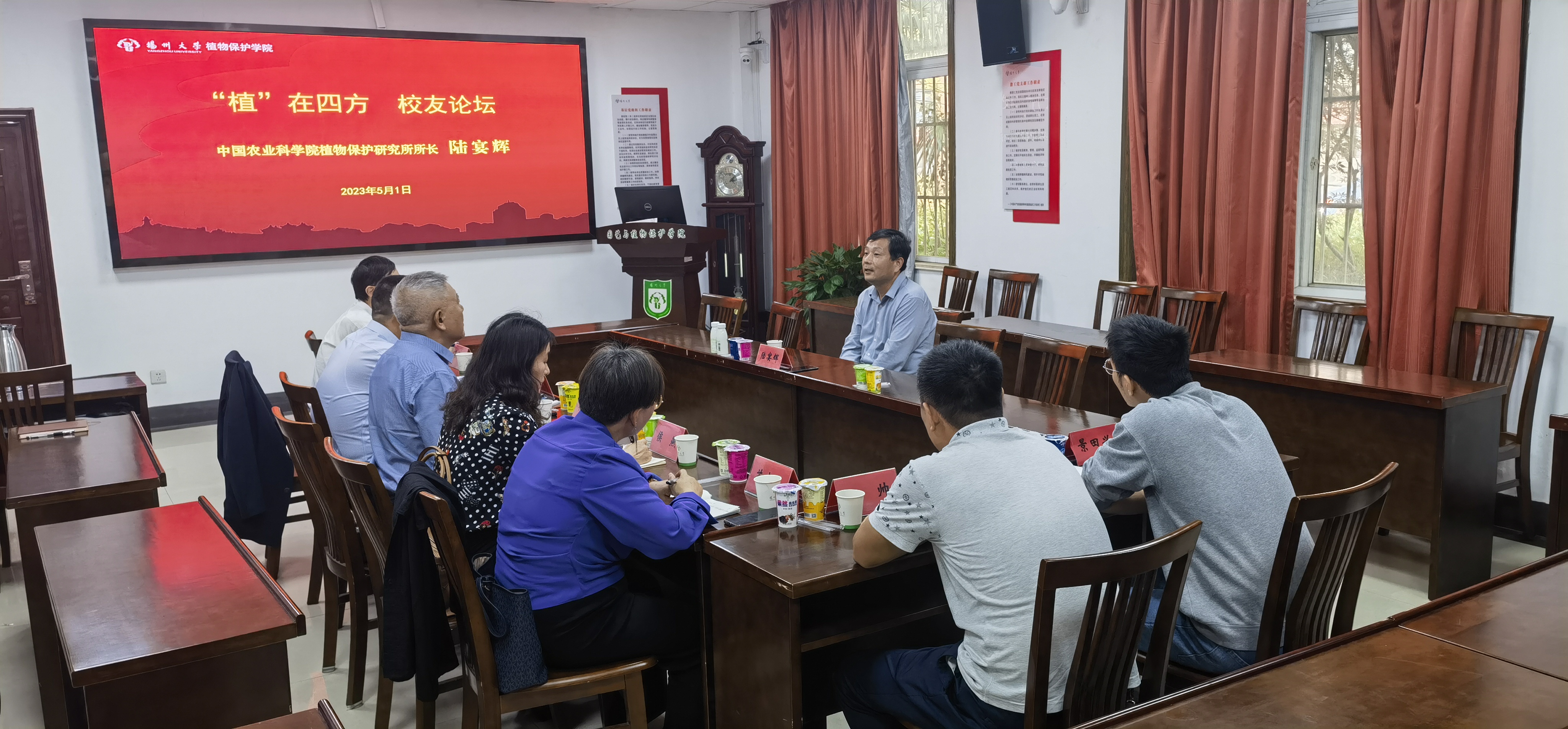 5月1日下午,学院在107会议室开展“‘植’在四方”校友论坛。本次论坛邀请的是植物保护专业2002届校友、中国农业科学院植物保护研究所所长陆宴辉。陆宴辉分享了所在团队长期以来的棉花研究经验,对学院科学研究发展提出了宝贵的建议,希望学院科学分析国内外院校同类学科发展趋势及优势,结合中央关于农业的重大部署及地方产业需求,找准学科发展方向。