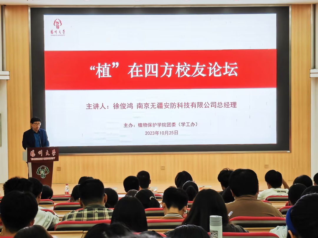 10月15日下午,我院于逸夫图书馆报告厅开展“植”在四方校友论坛暨2023级本科生导师制启动会。会议由院党委副书记魏训鹏老师主持,特别邀请南京无疆安防科技有限公司总经理徐俊鸿进行演讲,学院冯建国老师、朱峰老师、李尧老师出席并进行发言,全体辅导员及2023级本科新生参加。