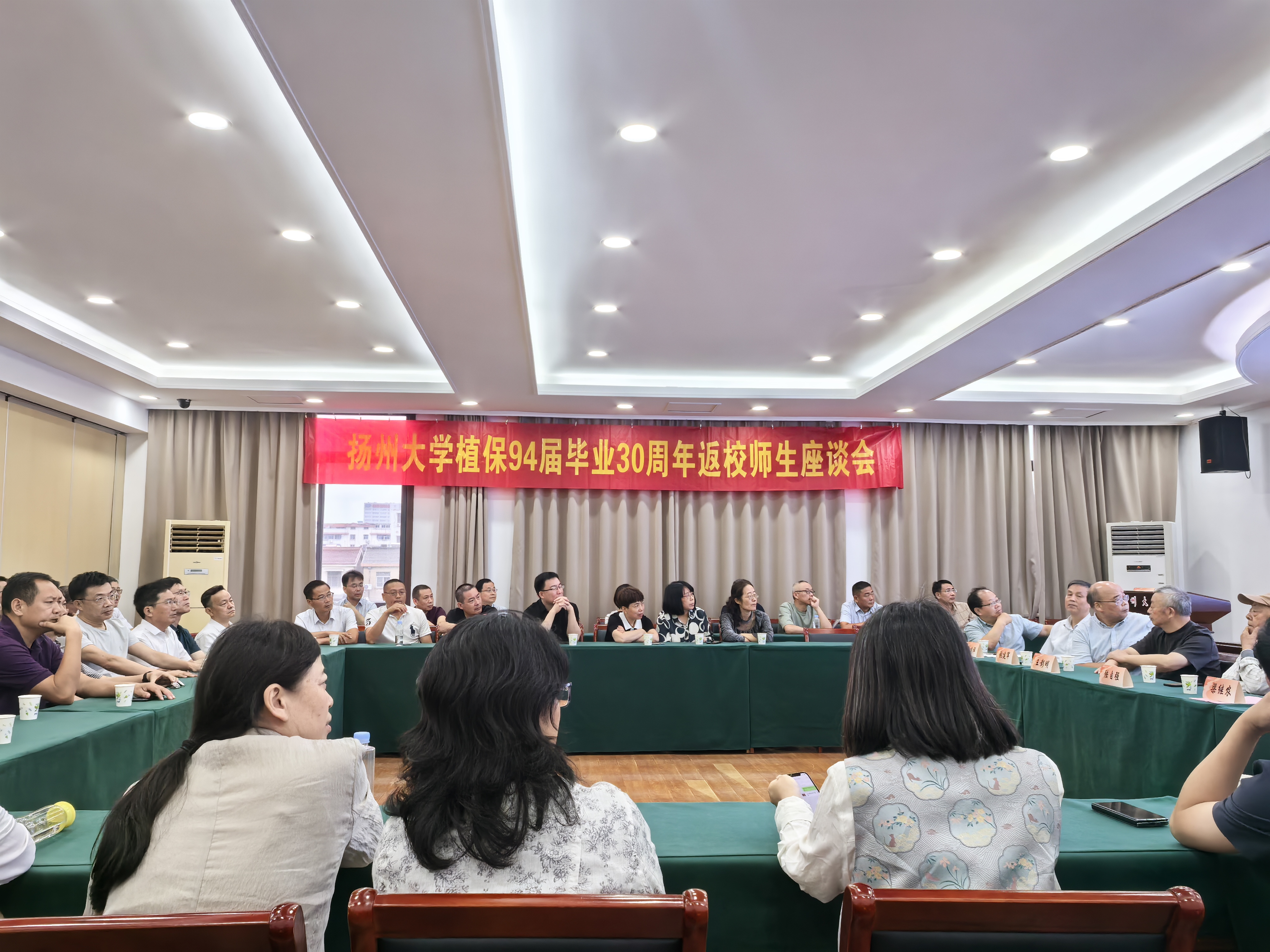 9月21日,植保901、902班校友返回母校在文汇路校区举行毕业30周年聚会活动。学院党委书记侯燕、院长杨国庆参加活动。时任班主任沈国清、杭三保,时任教师代表陆自强、梁继浓、马式廉、王彰明、杨益众、袁树忠、张建军、徐建祥等应邀参加座谈交流。活动由植保902班校友扬州市政法委副书记许林灿主持。