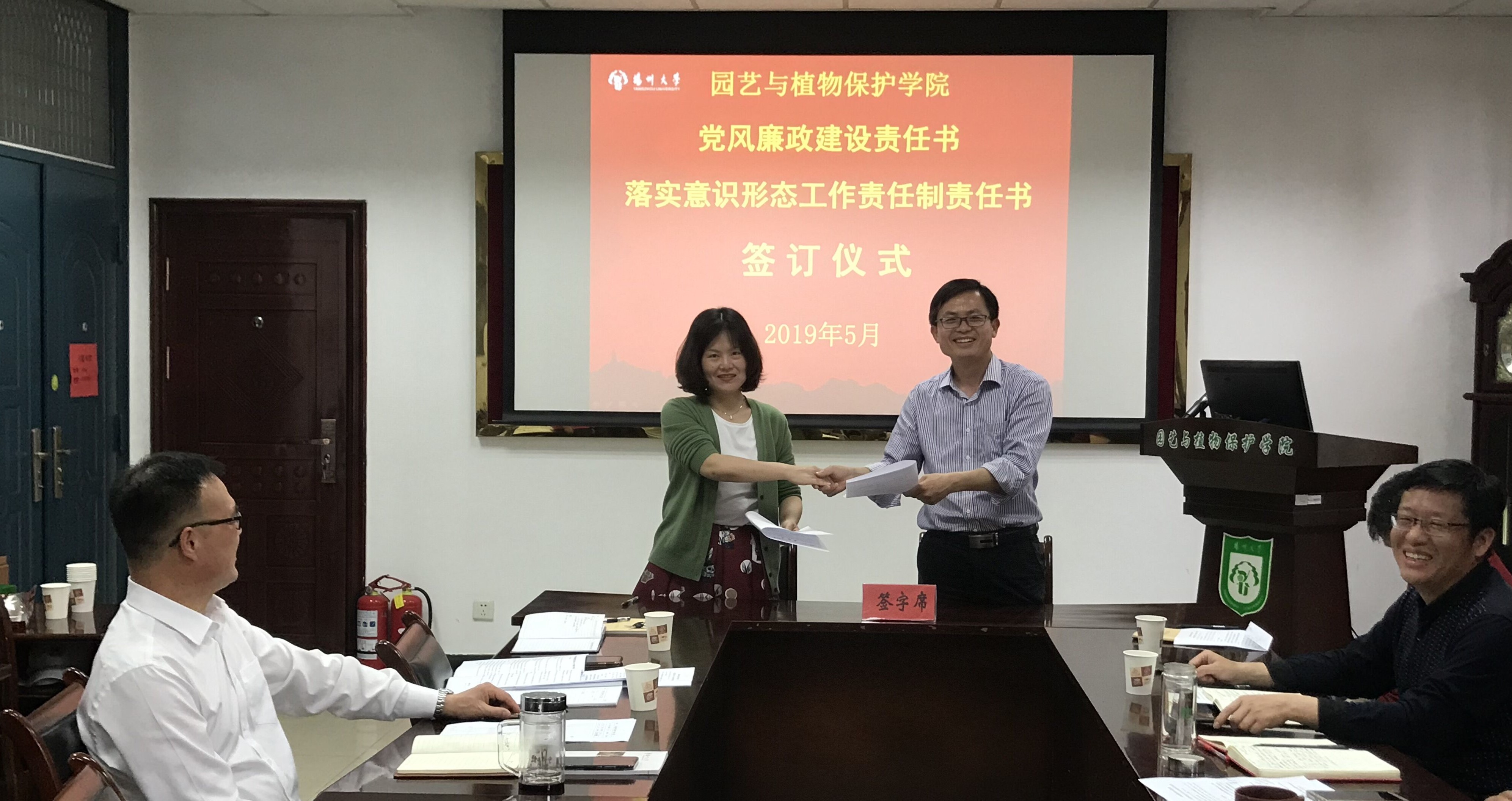 会上,院领导还与各系各部门主要负责人签订了《2019年度党风廉政建设责任书》和《2019年度学院党委落实意识形态工作责任制责任书》。