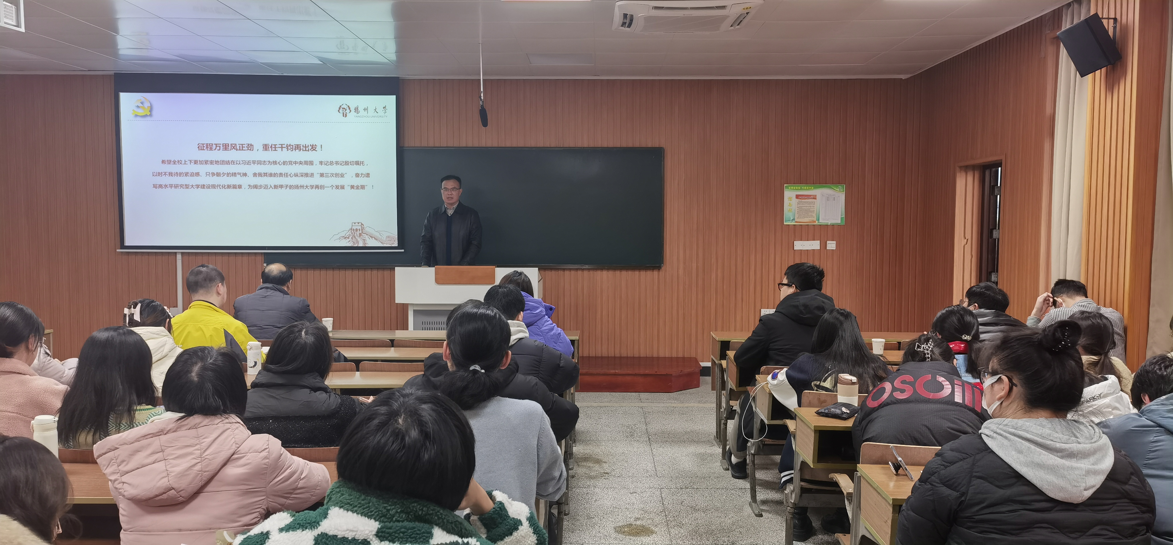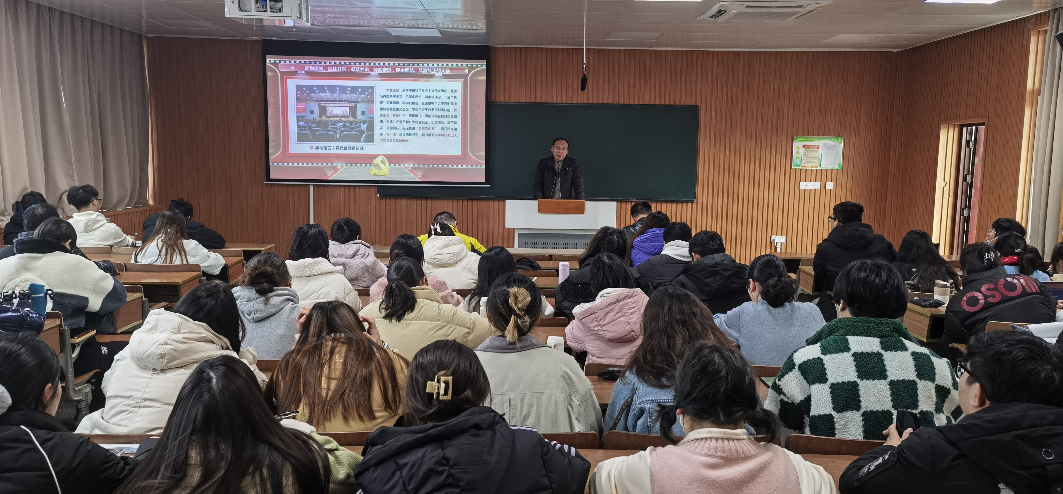 孙鹏部长作了题为《全面落实学校第四次党代会部署,奋力谱写高水平研究型大学建设现代化新篇章》的报告,孙部长从校第四次党代会召开的背景入手,回顾了第三次党代会以来的五年,在党委的坚强领导下学校在实施七大一流工程建设方面取得的成就,阐述了在新甲子新征程上“三步走”发展规划,展望未来五年发展目标,明确提出以“优化组合、转型化合”为根本遵循,实施五大发展战略,构建“六大体系”,实现“七个新突破”,纵深推进“第三次创业”,成功跻身“双一流”建设高校行列,为广大预备党员上了一堂精彩的党课。