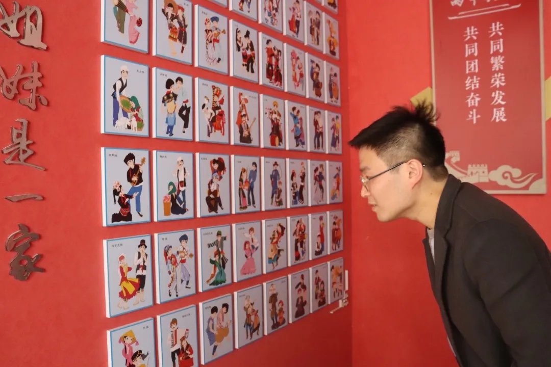 习近平在第二次中央新疆工作座谈会上指出:”各民族要相互了解、相互尊重、相互包容、相互欣赏、相互学习、相互帮助,像石榴籽那样紧紧抱在一起。红石榴家园展现了五十六个民族共同团结奋斗,繁荣发展的美好面貌。我院青年代表们跟随着团委副书记毛蒋楠和王丽丽老师的步伐,一起参观了红石榴家园。参观过程中,青年代表们认真阅读每一面墙上的珍贵资料,汲取榜样力量,践行使命担当。