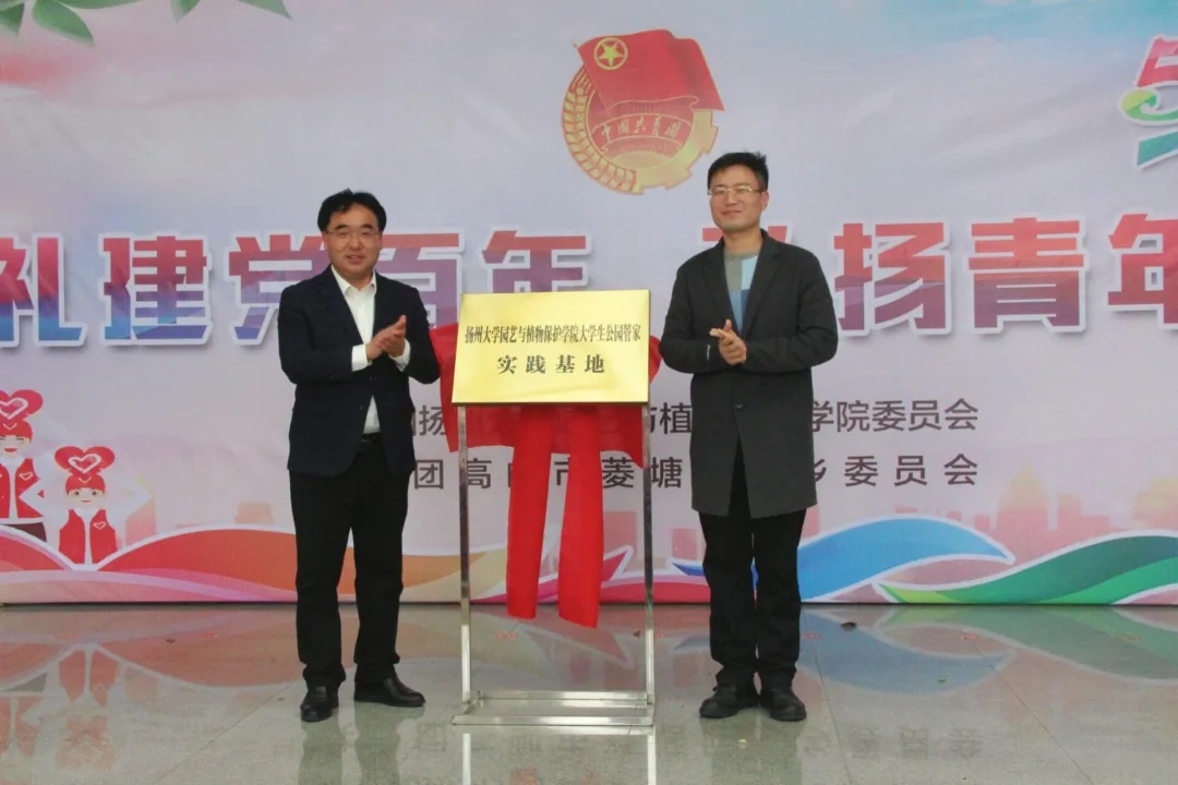 活动最后,我院团委副书记毛蒋楠和菱塘回族乡党委领导乔元江为扬州大学园艺与植物保护学院大学生公园管家实践基地揭牌。高邮菱塘作为我院大学生公园管家实践基地之一,为大学生创造了更多的课外实践机会,也为乡村振兴发展和生态文明建设提供了强有力的人才支持。