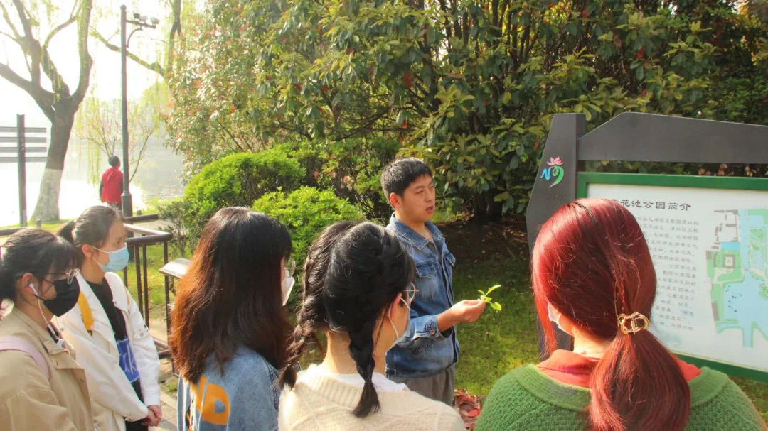 3月28日上午,研究生学长带领志愿者们来到荷花池公园进行植物认识活动。
