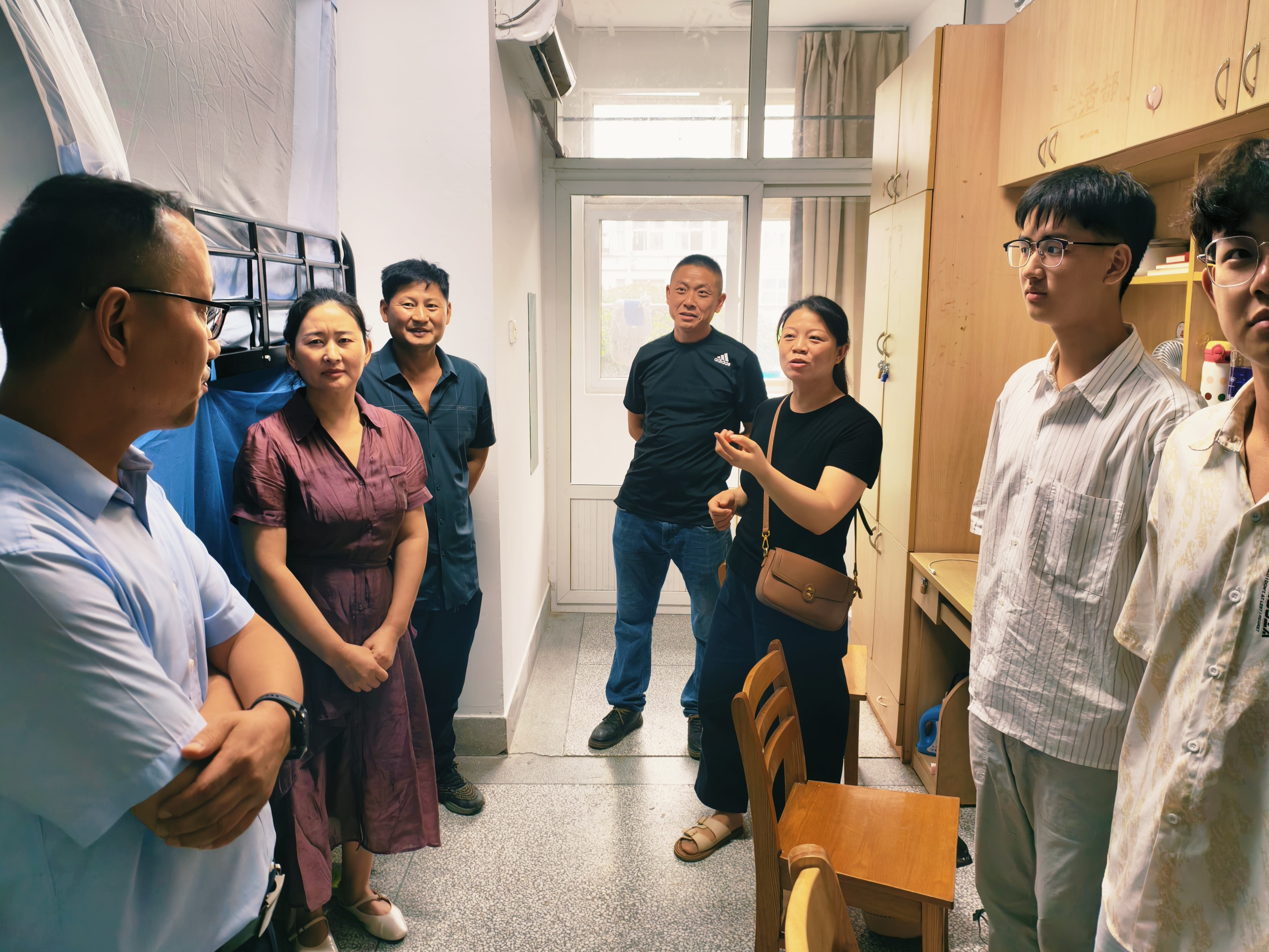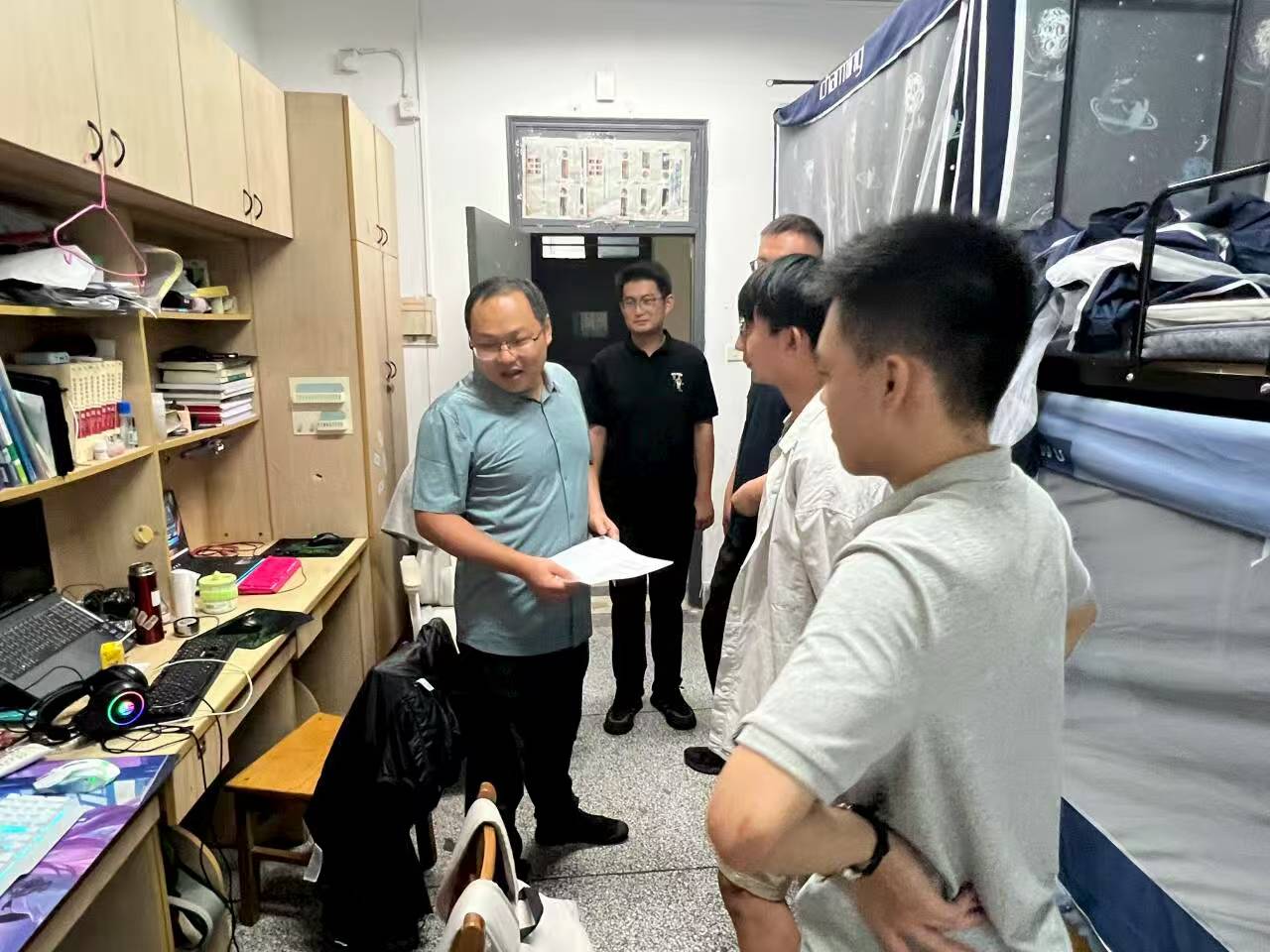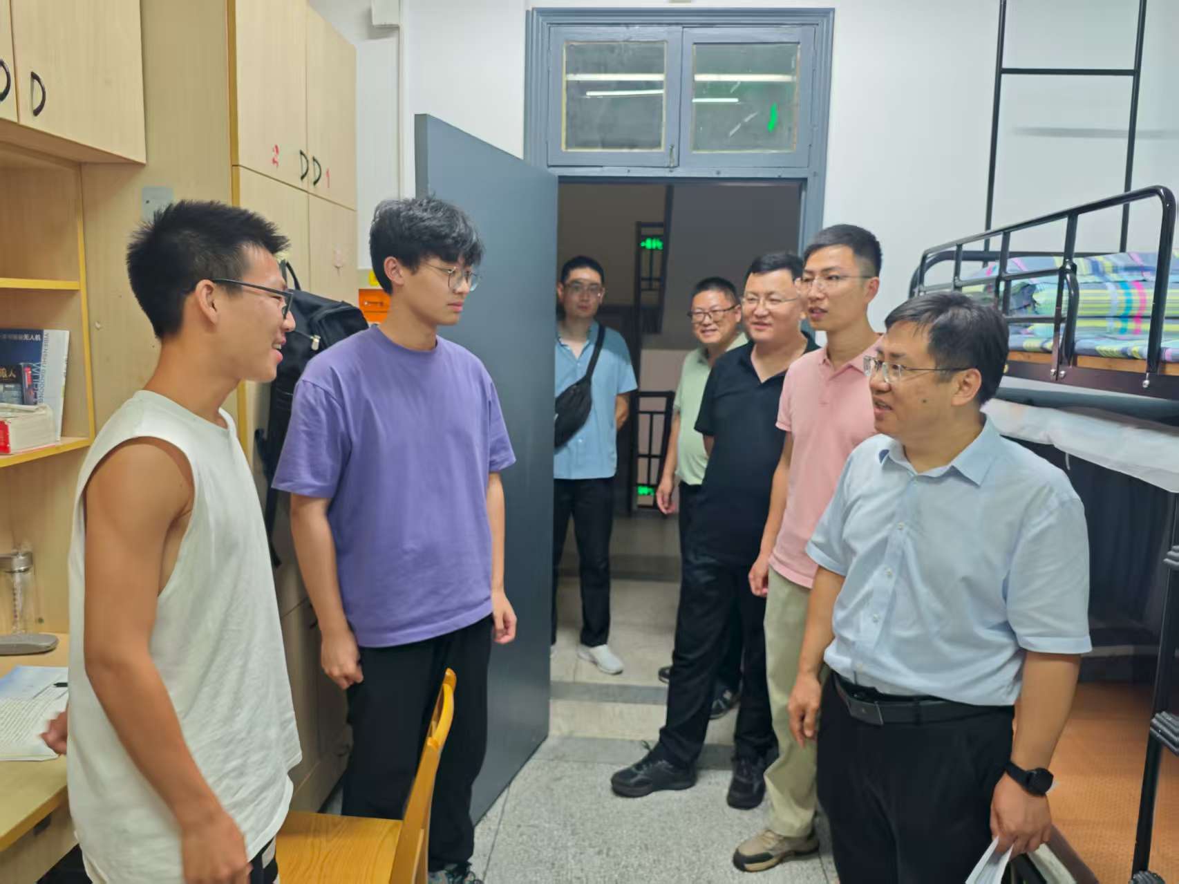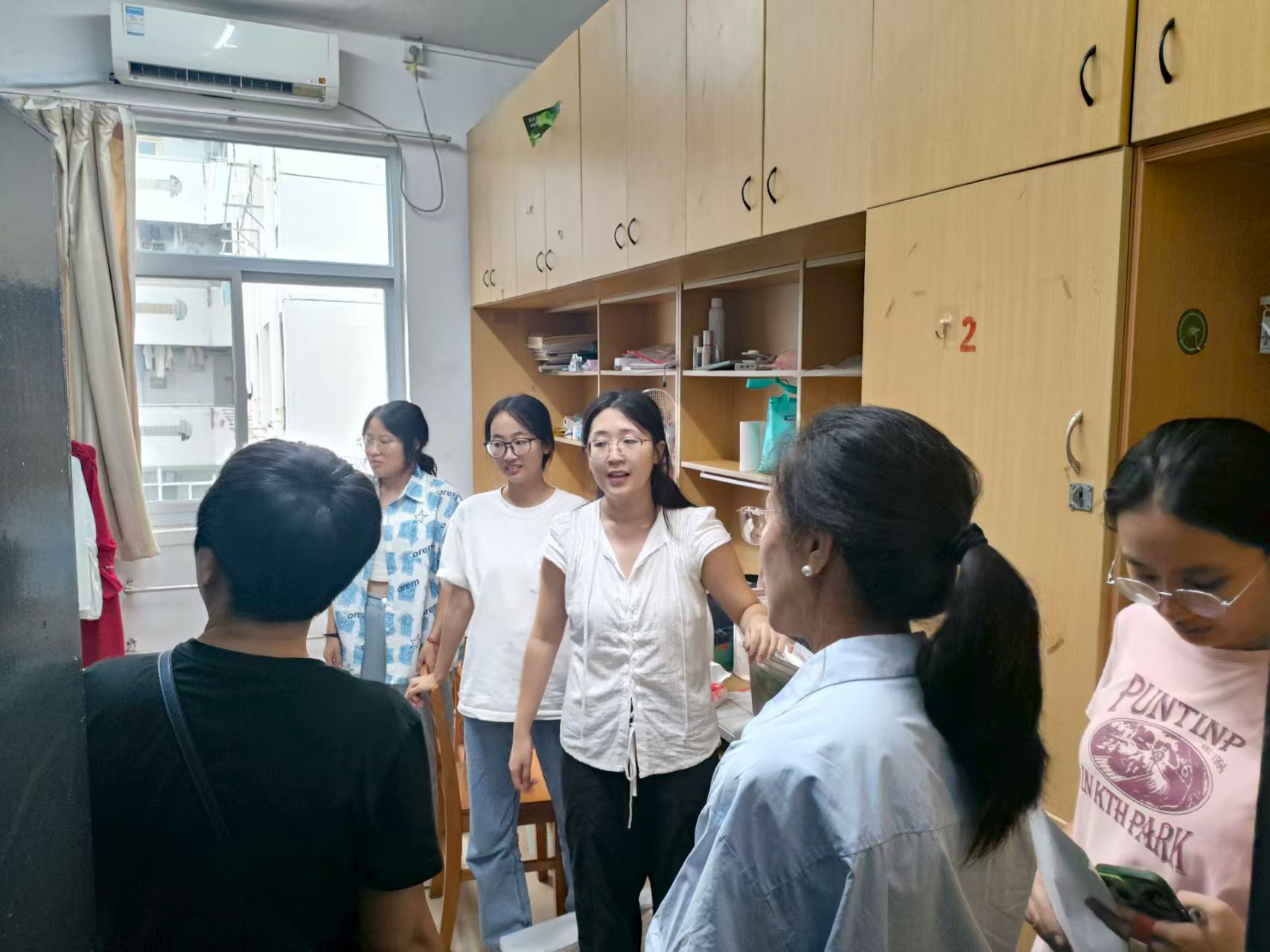 院领导带领班主任、辅导员深入宿舍看望新生,与刚入住的新生亲切交流。他们仔细查看宿舍设施,询问新生饮食起居是否适应,叮嘱大家注意用电安全,尽快熟悉校园环境。同时鼓励新生调整心态、规划学业,遇到困难及时向老师和学长求助,让初入校园的新生感受到学院的关怀与温暖。