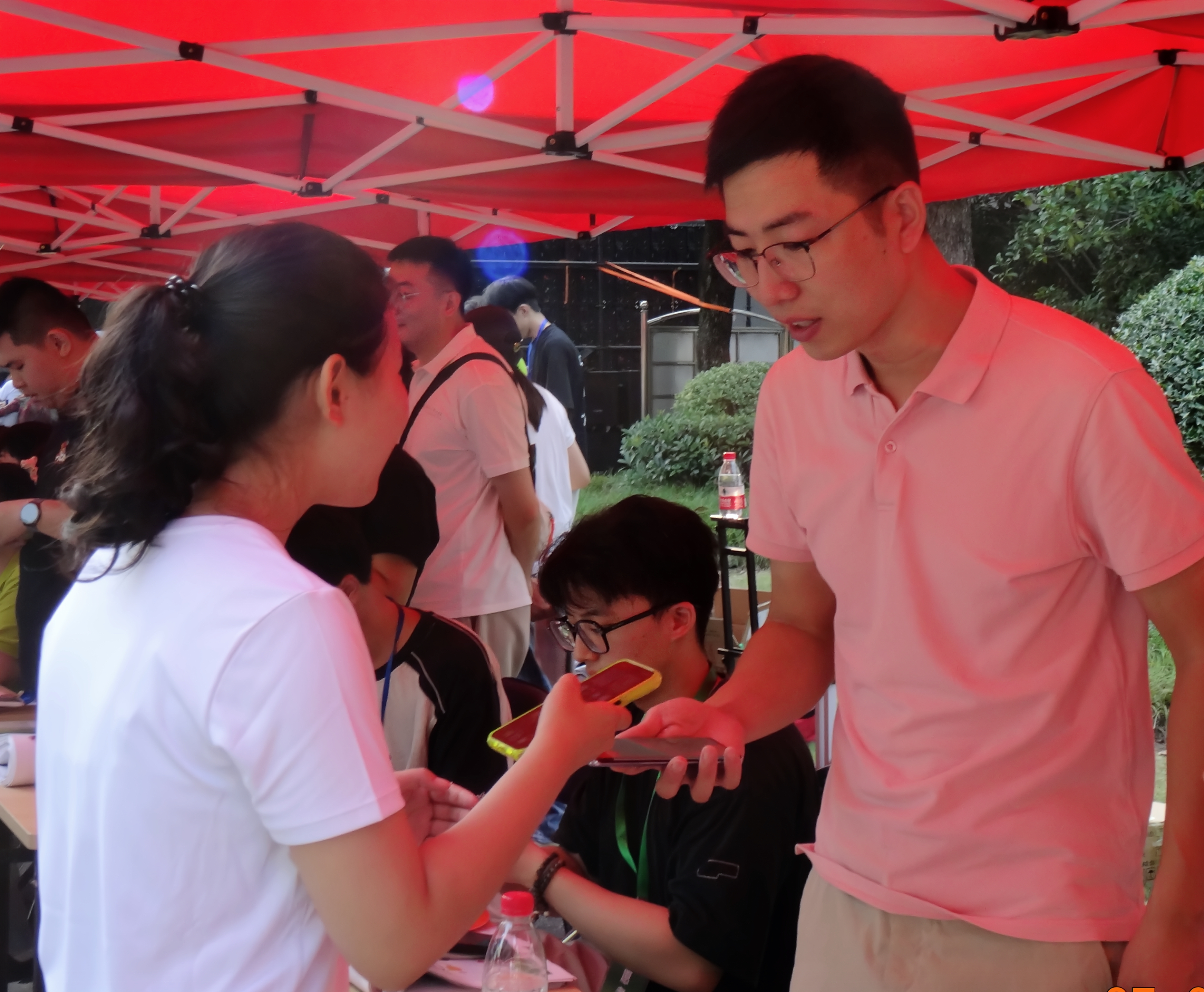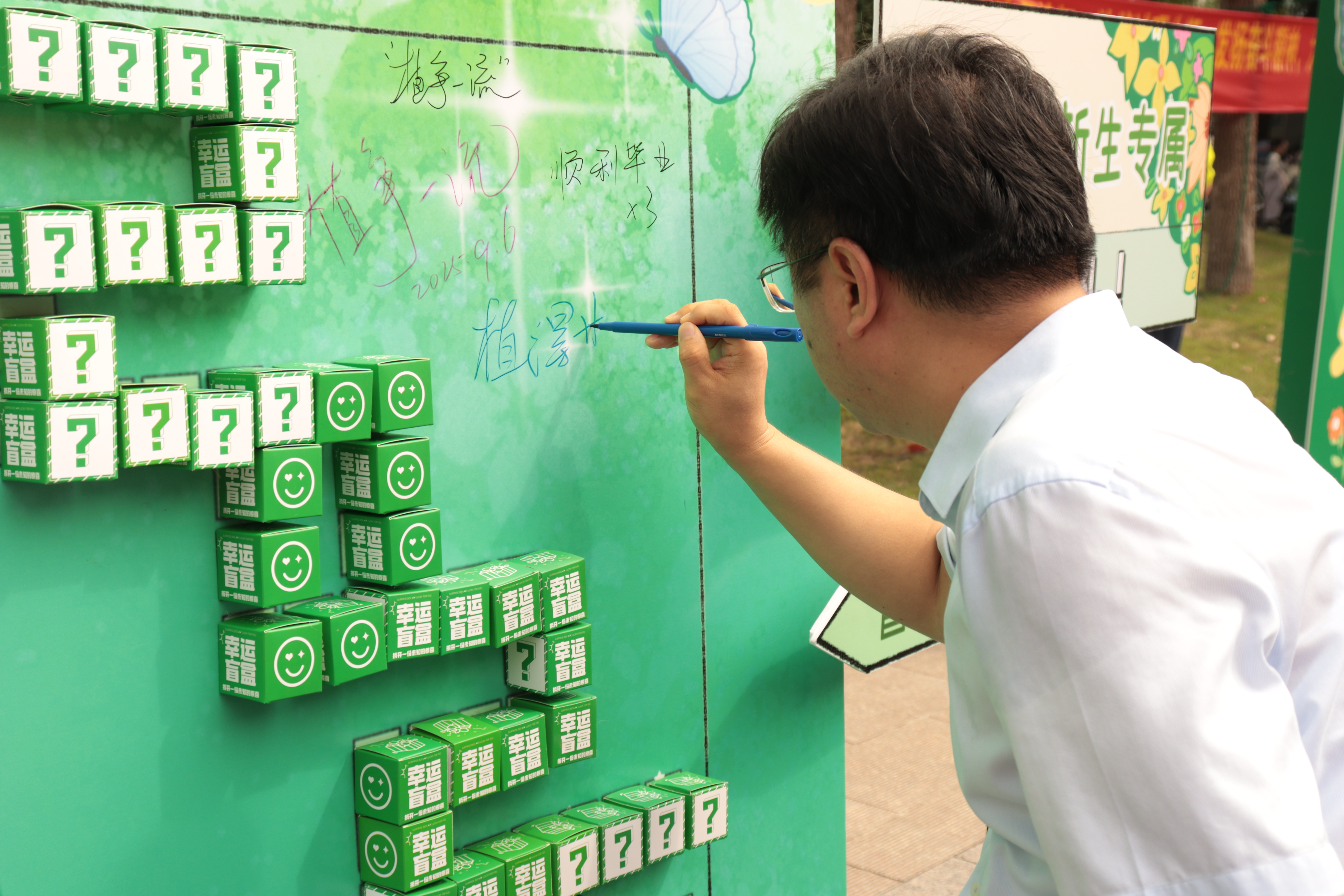 现场最热闹的,莫过于互动摆台区!志愿者们早已精心策划了一连串有趣的活动:扭蛋活动,看看你是否是那位天选之人!盲盒抽奖,你又能否收获这份专属惊喜呢?除了小活动,摆台上一些学院特色物品也吸引着大家。学院还设置了拍照区,用镜头定格下大家初入校园的青涩与可爱。现场笑声此起彼伏,温馨又热闹,让每个新生都能在这份欢腾里开启校园新生活,把独一无二的迎新记忆深深珍藏!