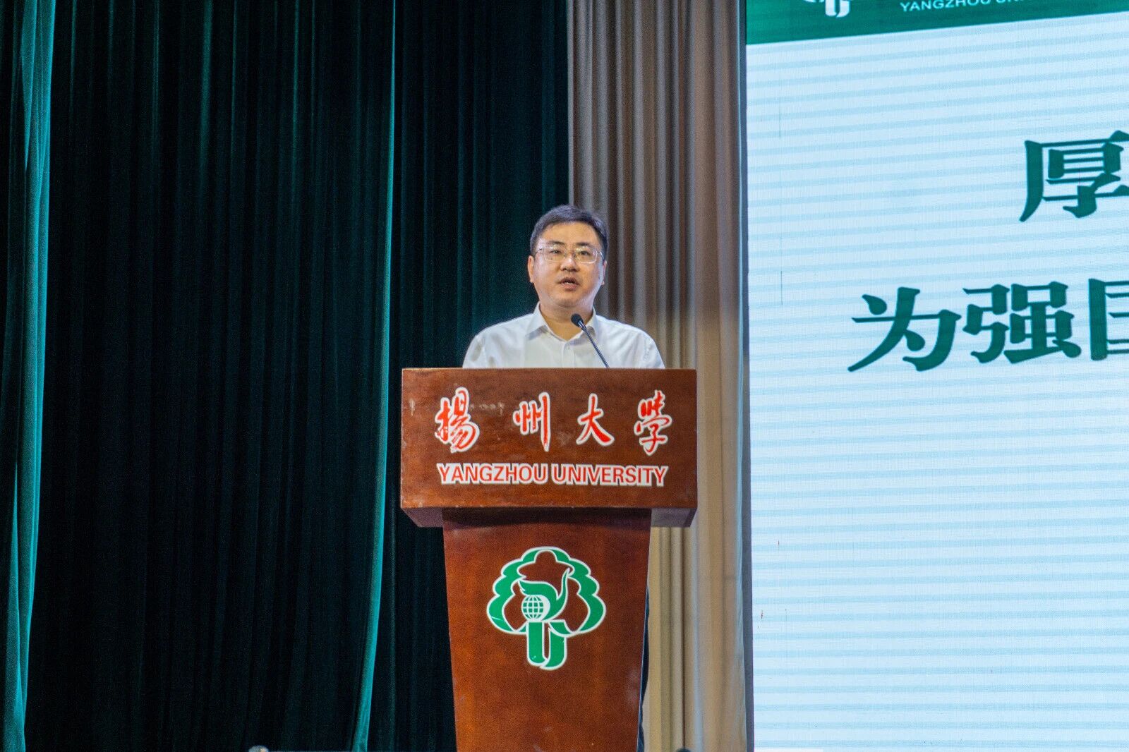 09级校友汤小天结合自身成长历程,以“三份感激”表达了对国家安定、母校培养以及个人坚持的深切感恩,并以“三点期许”鼓励新生将小我融入大我、真诚对待师友、始终保持奋斗。他希望学弟学妹珍惜大学时光,用实际行动在扬大书写无愧于时代的青春故事。