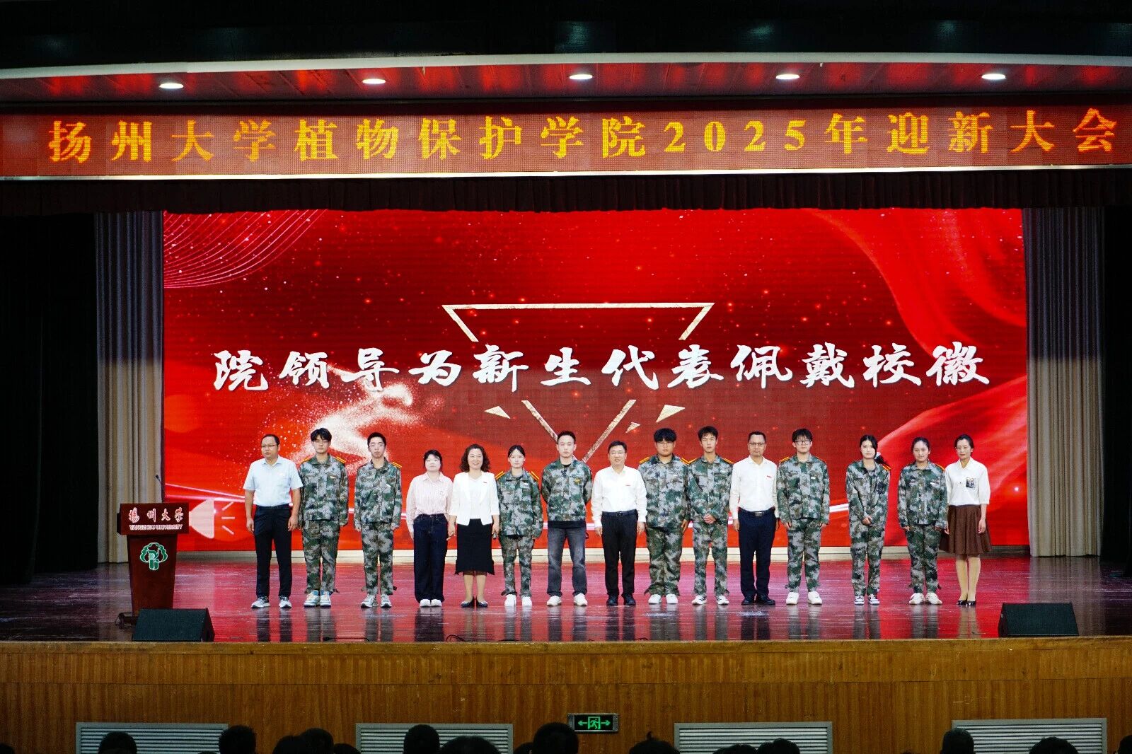 活动现场,院领导为25级新生班主任颁发聘书,并为2025级新生代表佩戴校徽。