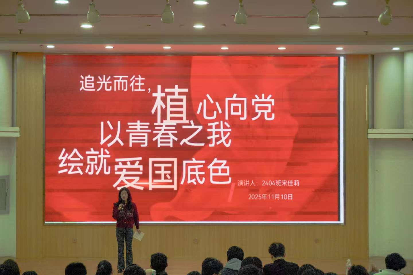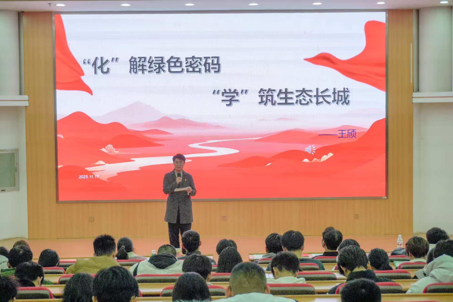 11月17日晚,我院在荷花池逸夫图书馆报告厅举办“植守初心,言润青春”主题演讲比赛决赛。辅导员张成伟老师,姚赛老师,助理辅导员贺萧宇同学,各学生组织主席团代表及全体25级本科生参加此次活动。