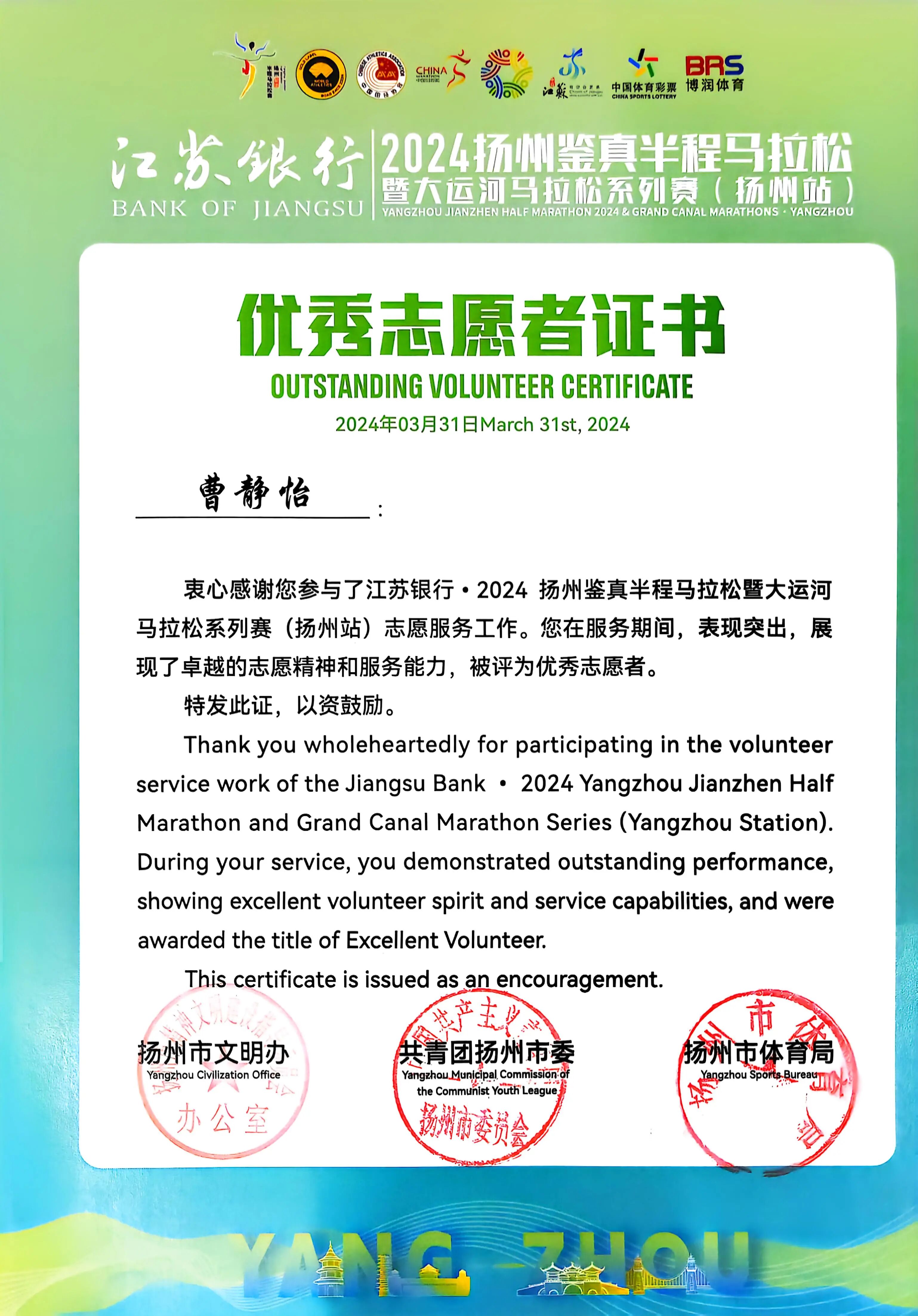 优秀代表 曹静怡