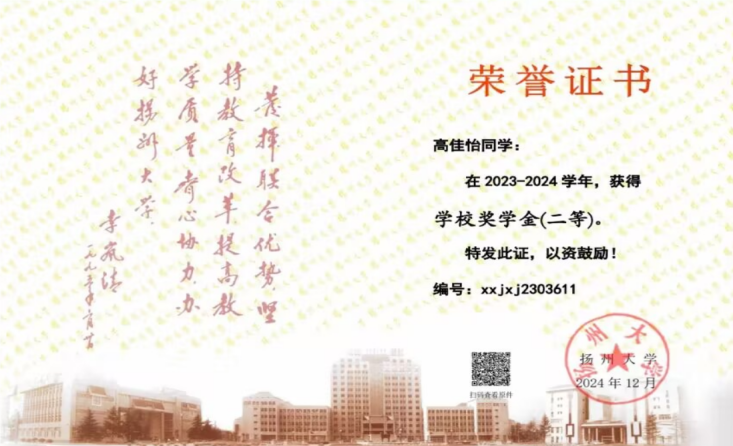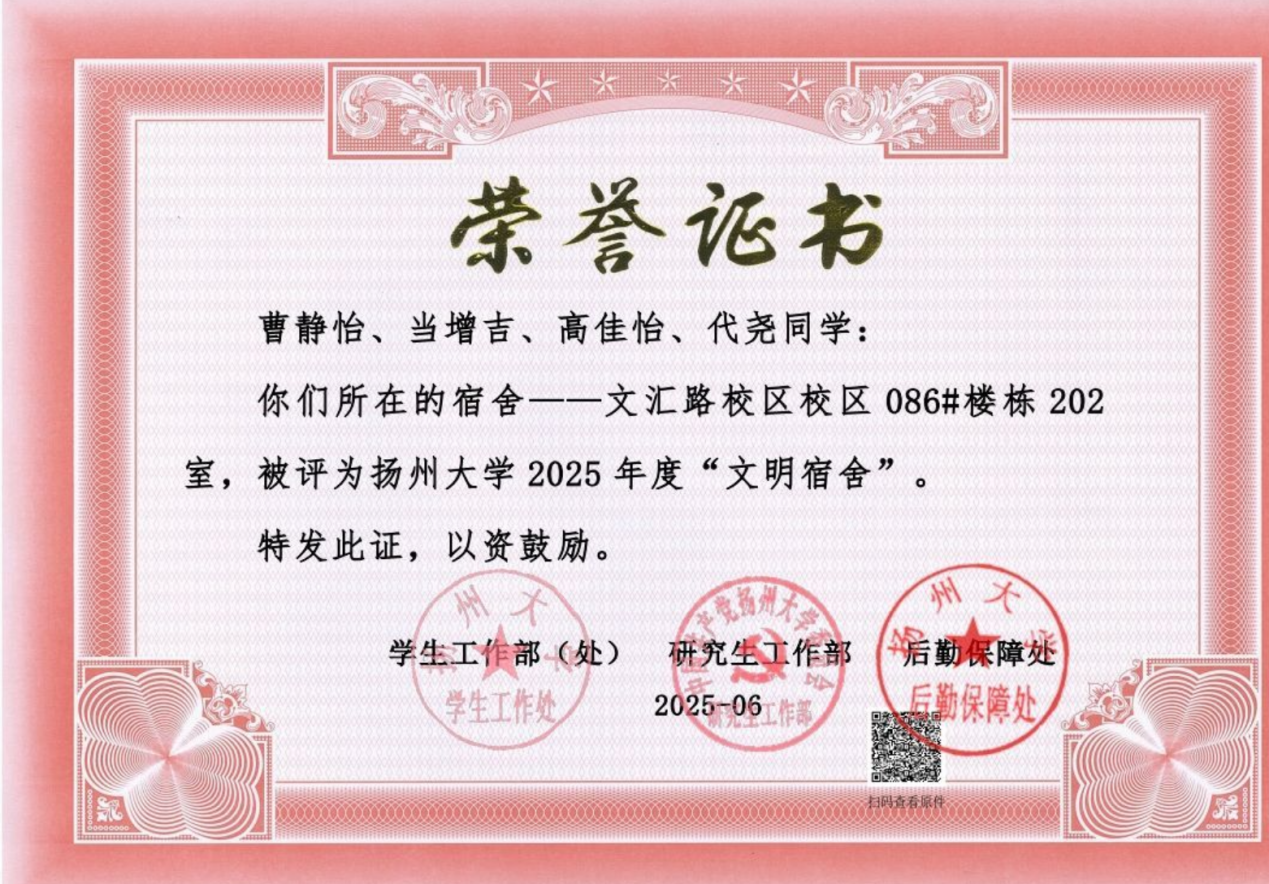 “在扬大的时光,如同一次精心播种、静待花开的旅程。感谢这片沃土,让梦想的种子得以生根发芽。”前路漫漫,曹静怡同学将继续以勤为犁、以思为露,在科学的园地里深耕不辍。她坚信:“想做的事情马上去做,太阳下山是不等人的。” 愿每一位追光者都能找到自己的节奏,不负韶华,终成嘉木!