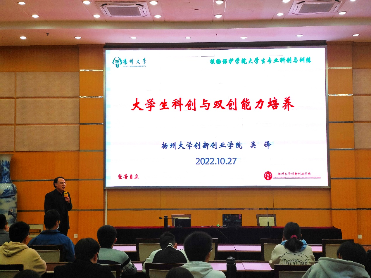 为进一步提升我院青年教师的创新创业教育能力,培养学生的创新创业意识和思维,10月27日,我院邀请了扬州大学创新创业学院执行院长吴锋教授为我院近三年入职青年教师以及植物保护专业2020级全体学生作了题为《大学生科创与双创能力培养》的专题讲座,讲座由学院刘景澜副院长主持。