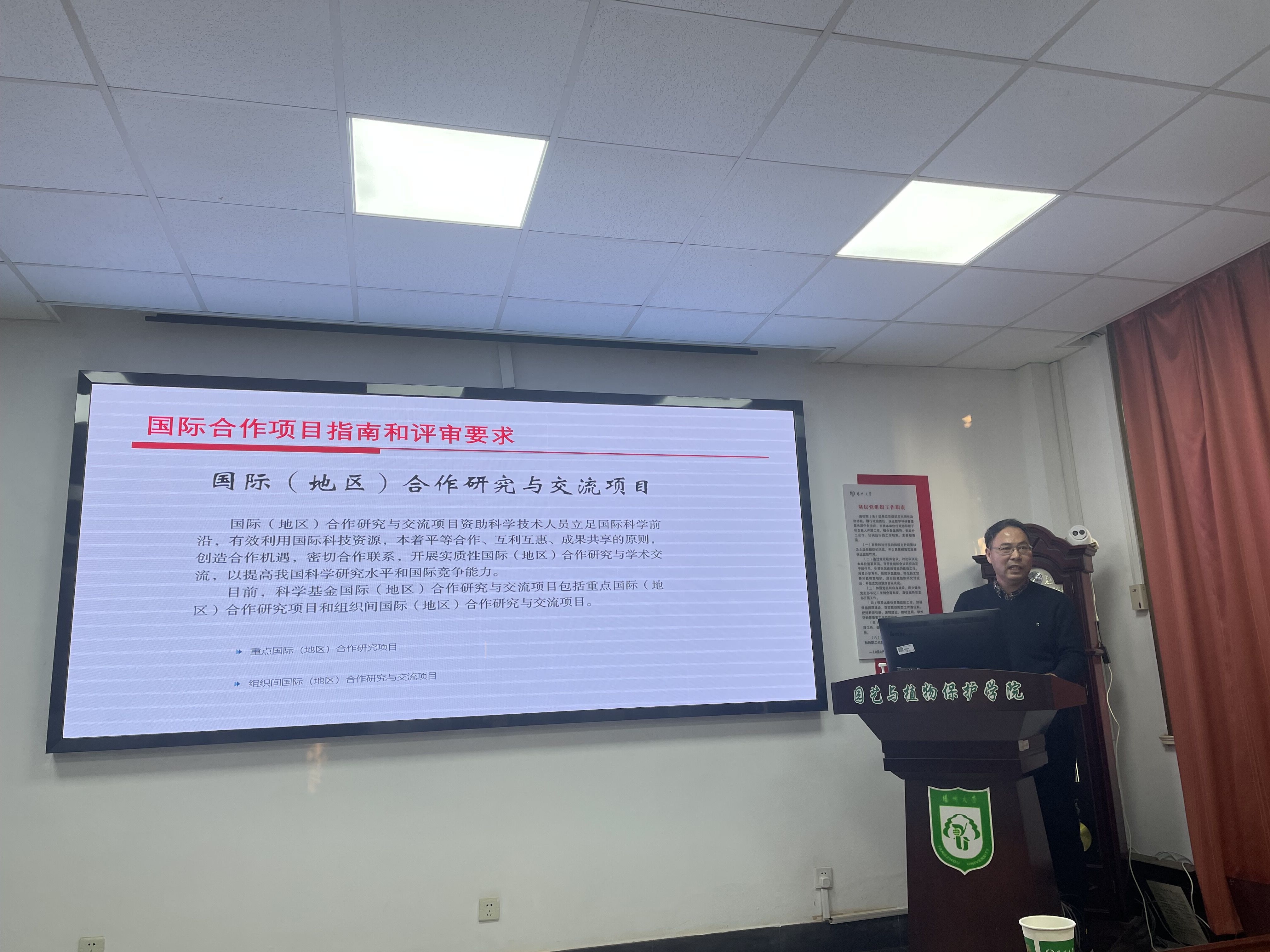 交流会上,朱国强教授从国际合作简历、国际合作基础和传承、国际合作交流及国际合作研究等四个方面进行了详细介绍,并分享了自己申报国际合作项目的经验;徐辰武教授从国际合作项目的基本情况、申请国际(地区)合作研究与交流项目前期准备、申请书撰写、评审和答辩过程中的注意事项等几个方面进行了毫无保留的分享。最后,两位教授对园植学院教师申报国际合作项目的方向和可能存在的问题提出了自己的观点与看法,鼓励大家勇于创新、提前规划。最后详尽地回答了老师们的提问。