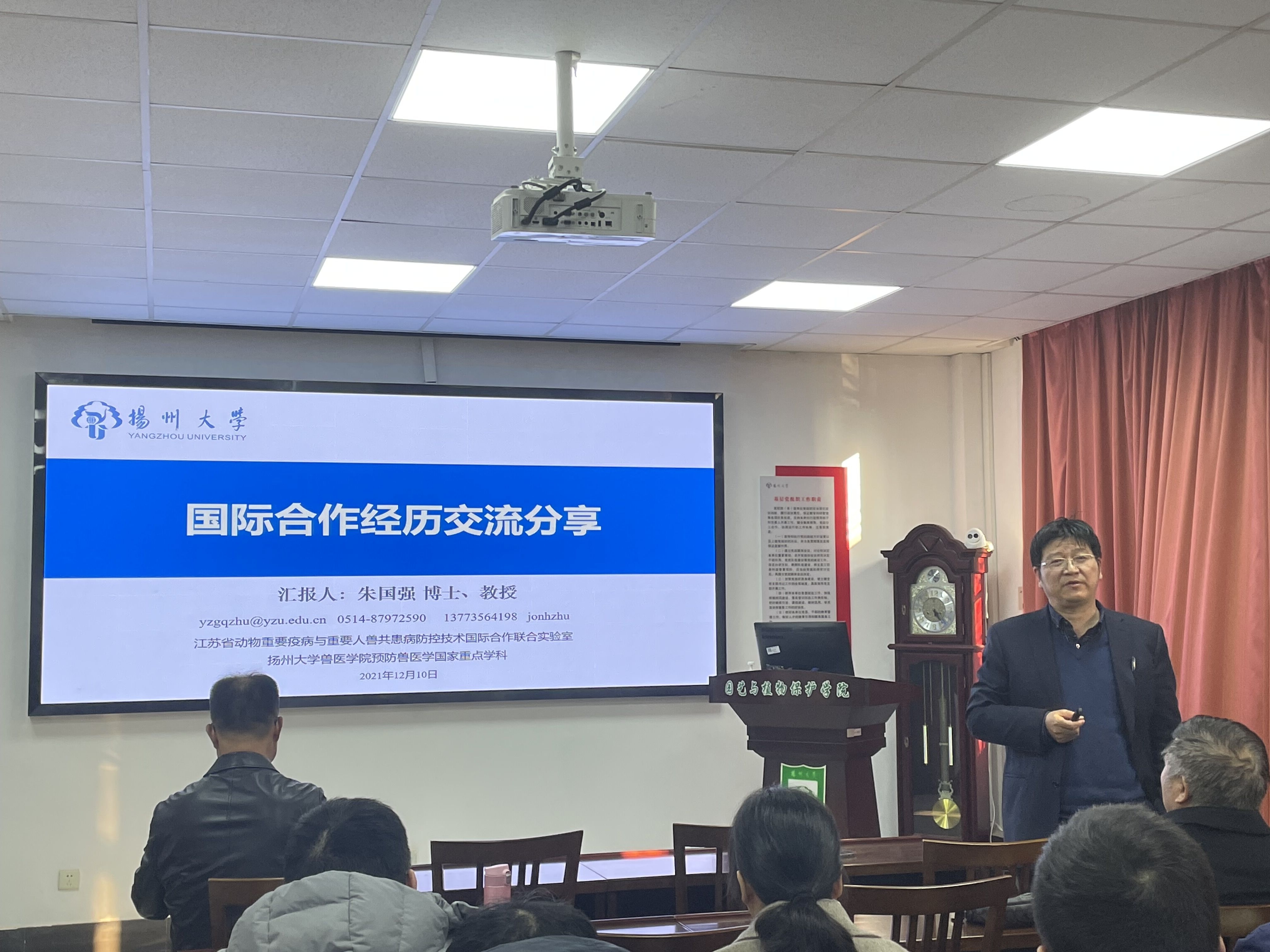 12月10日下午,扬州大学兽医学院朱国强教授、农学院徐辰武教授应邀来学院开展国际合作项目申请经验分享交流会。