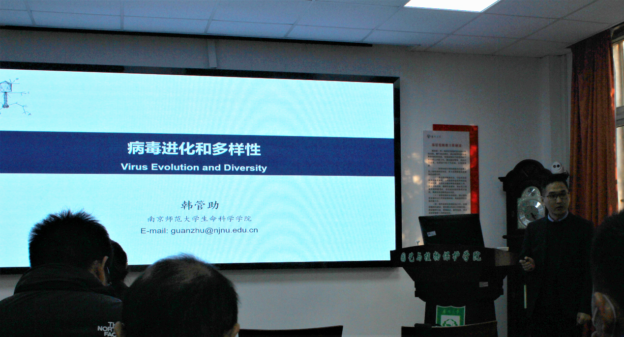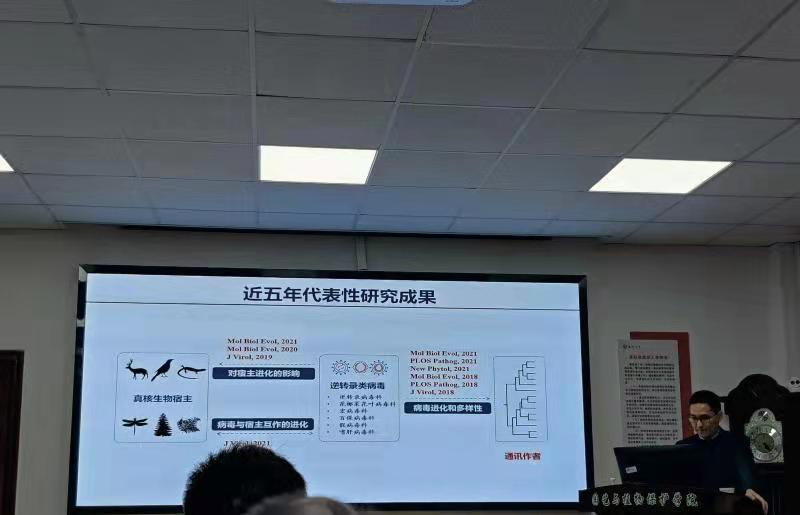 11月29日下午,南京师范大学生命科学学院韩管助教授应邀来我院,做了题为“病毒进化与多样性”的报告。韩管助教授主要从事病毒进化和多样性以及病原与宿主间互作进化方面的研究工作,共发表SCI收录论文60余篇,其中作为通讯作者在Molecular Biology and Evolution、PLOS Pathogens、Journal of Virology、New Phytologist、Plant Physiology、Plant Journal、Trends in Microbiology等国际主流期刊发表论文40余篇。报告会展示了逆转录病毒如何起源进化以及逆转录病毒对宿主进化影响的机制。