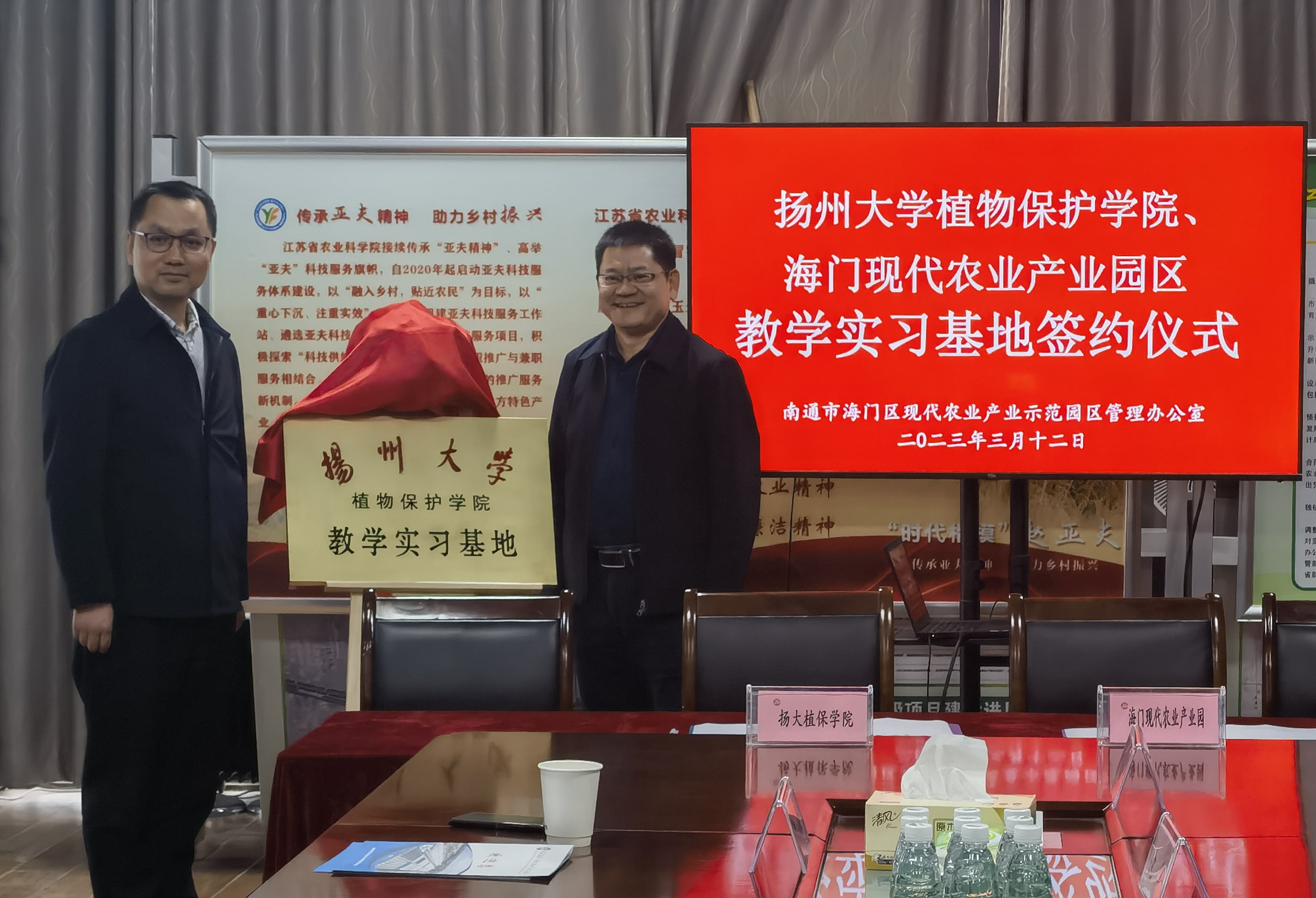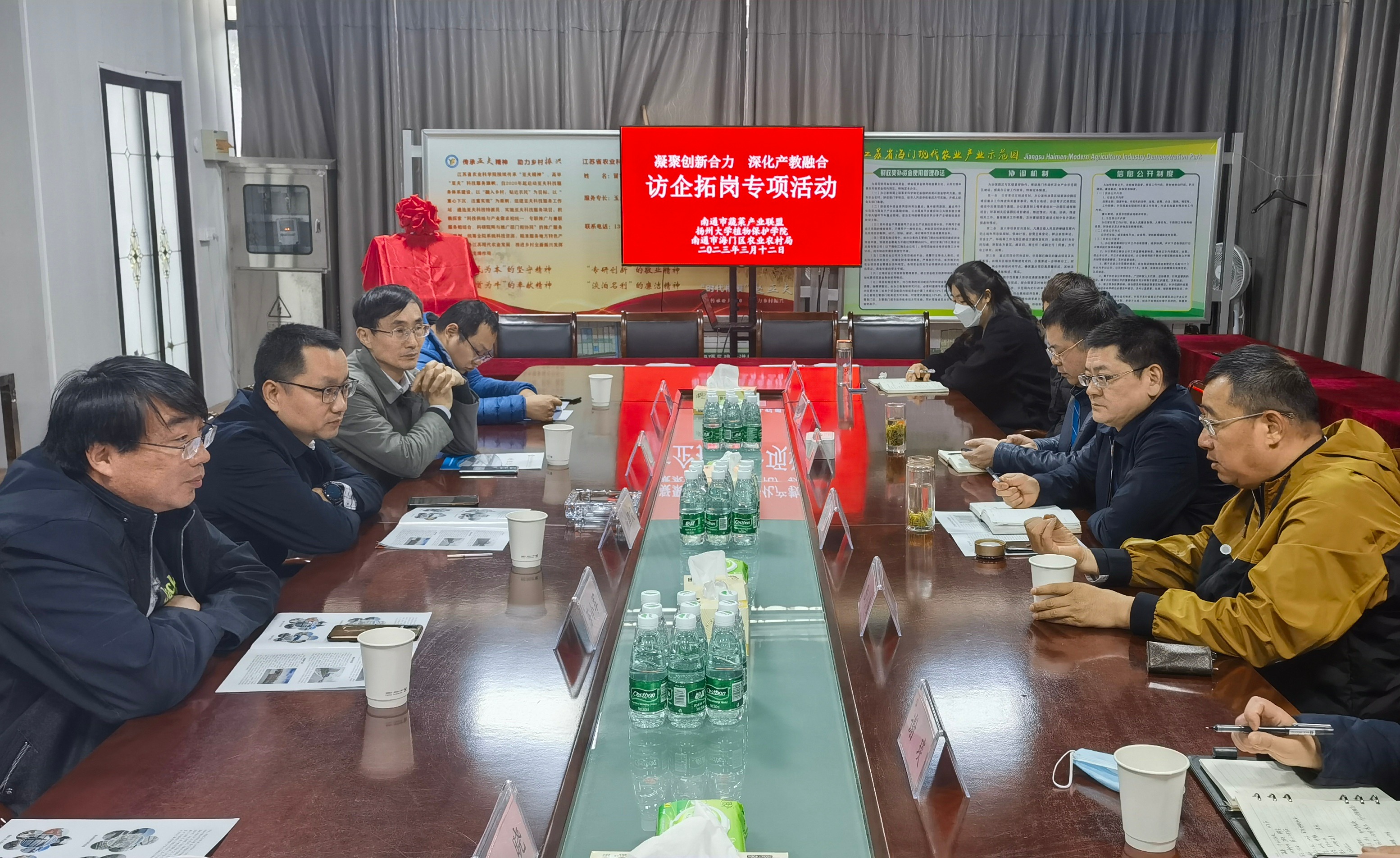 为促进我院毕业生高质量就业,3月12日-13日,学院杨国庆院长一行赴南通海门区开展“访企拓岗”专项活动,先后与江苏广海检验检测有限公司、强盛农业科技发展有限公司、海门区农业农村局及江苏省海门现代农业产业园等企事业单位就人才培养、科技服务、实践教学等方面开展深入交流,并在江苏省海门现代农业产业示范园建立教学实习基地。