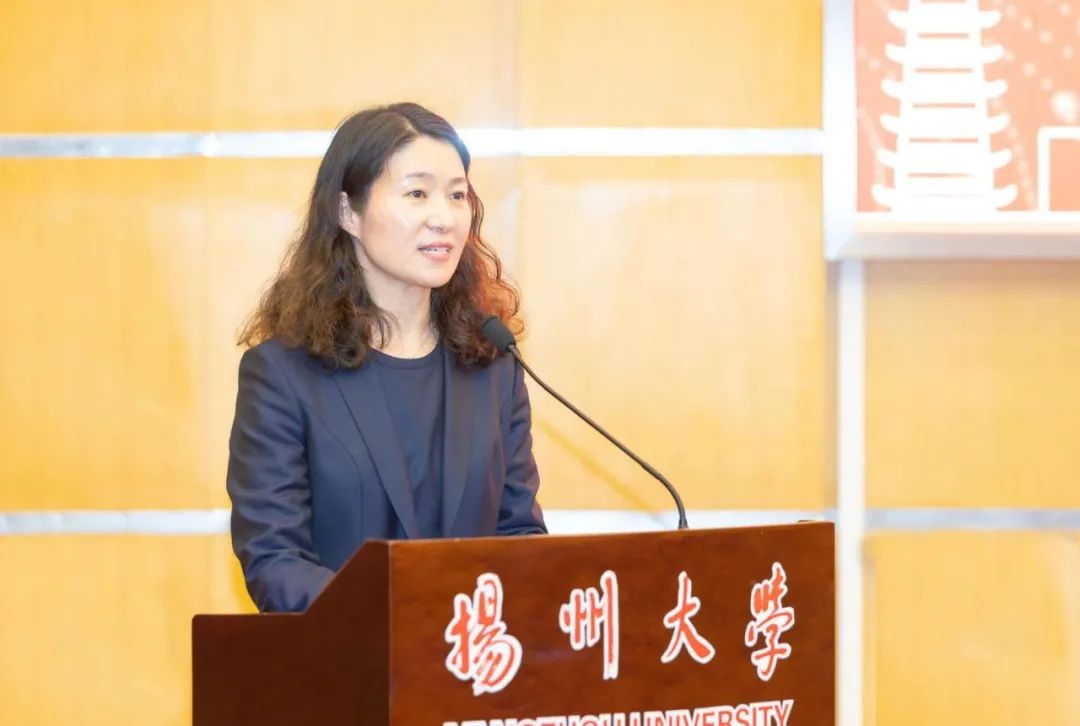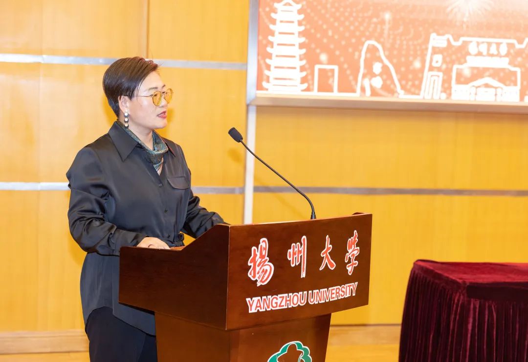 党委书记侯燕致辞感谢各级领导和校友们对学院发展和学生成长的关心支持,号召同学们勤学、实践、奉献,为推进乡村振兴、服务农业农村现代化贡献植保力量。