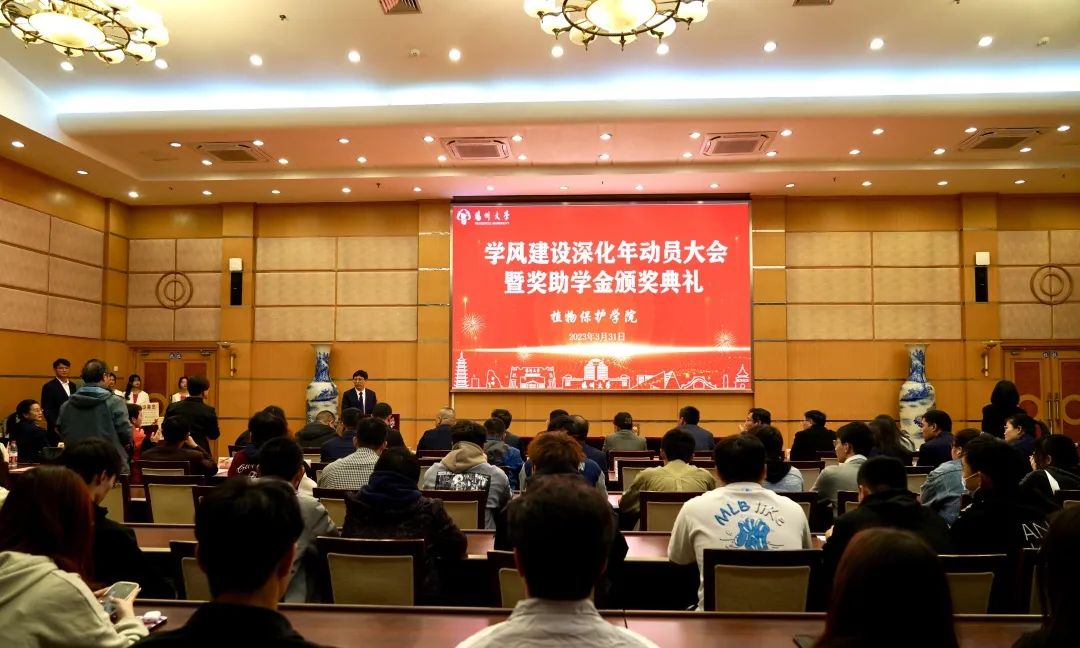 3月31日下午,学院在荷花池校区教学主楼二楼多功能厅举办学风建设深化年动员大会暨奖助学金颁奖典礼。校党委宣传部、教务处、研究生工作部、对外联络办公室、离退休处、学生工作部(处)、团委等部门主要负责人与会,校党委常委、副校长蔡颖蔚出席并讲话。