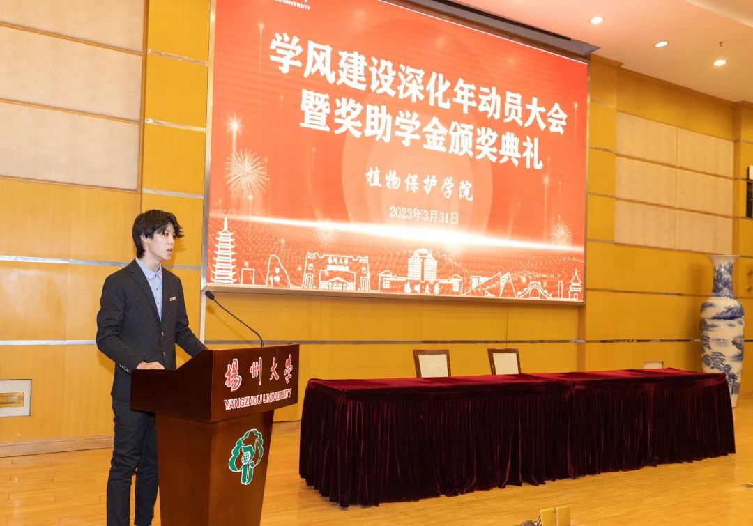 昆虫系主任苏宏华、植保2203班史韬睿分别发言,就推进学风建设提出见解,发出倡议。
