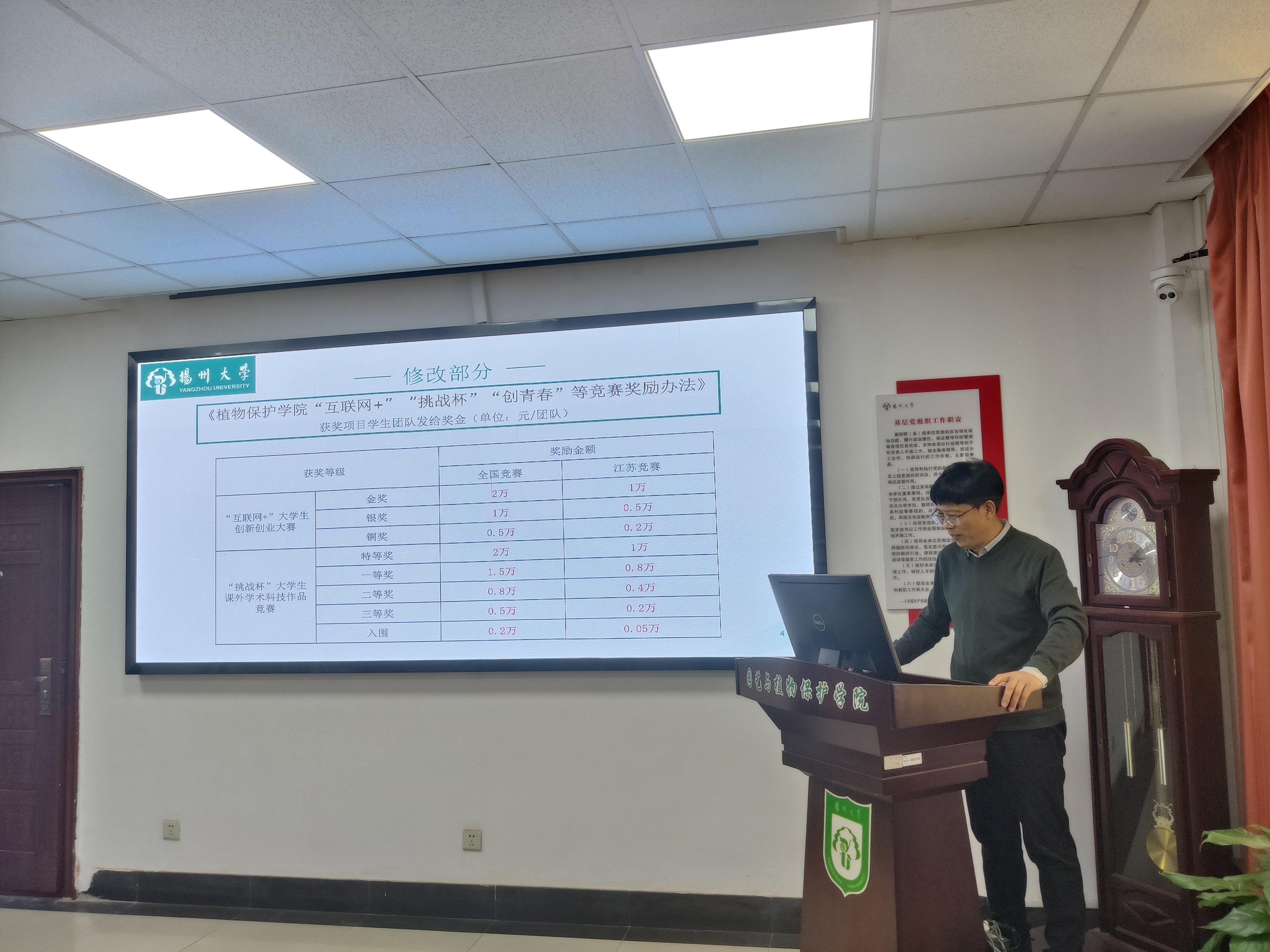 4月21日下午,学院在文汇路校区10号楼107会议室召开全院班主任工作会议,并邀请校团委副书记魏源、农药系主任陈小军进行创新创业专题辅导。