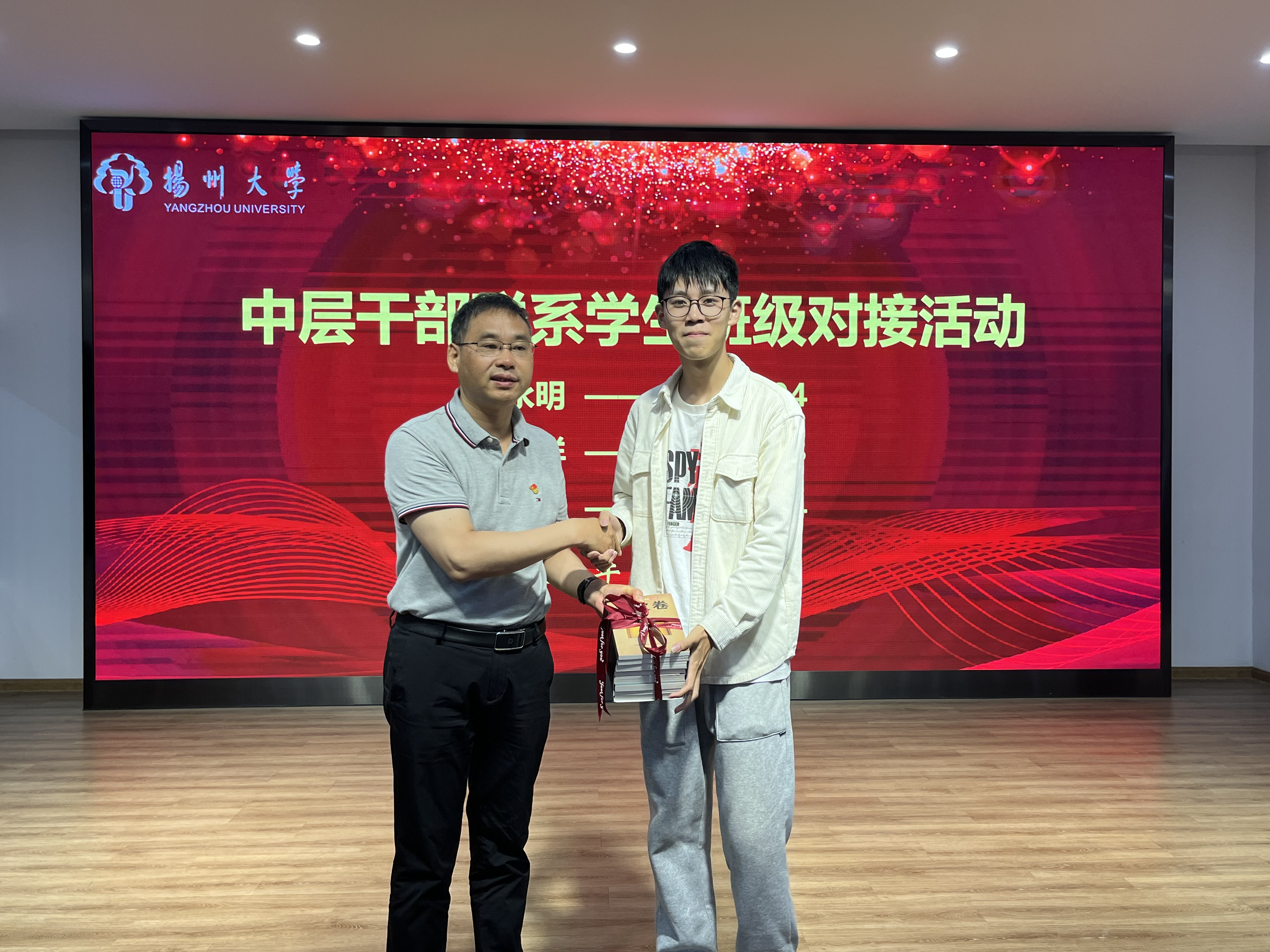 离退休处的领导、老师为结对班级捐赠书籍,希望同学们平时能够加强阅读,提升自身的文化素养。