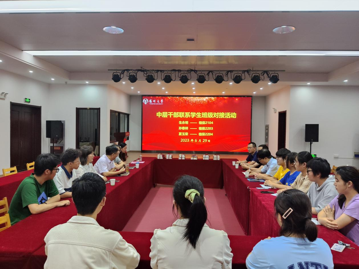 6月29日下午,校离退休处与植物保护学院结对班级开展中层干部联系学生班级对接活动。离退休处处长、离退休党工委书记、校关工委秘书长生永明、离退休处副处长、离退休党工委副书记孙春祥、离退休处副处长、离退休党工委委员、校关工委副秘书长夏玉荣、院党委副书记魏训鹏以及结对班级班主任和学生代表出席本次活动。