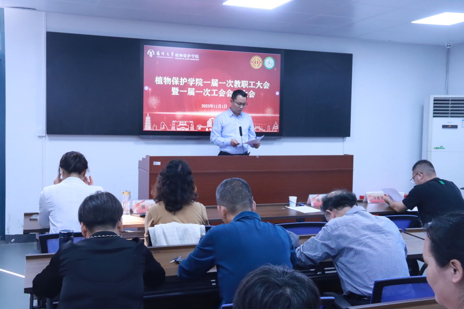 11月1日下午,学院一届一次教职工大会暨一届一次工会会员大会在植保楼236会议室隆重召开。校工会副主席高静出席会议并致辞。