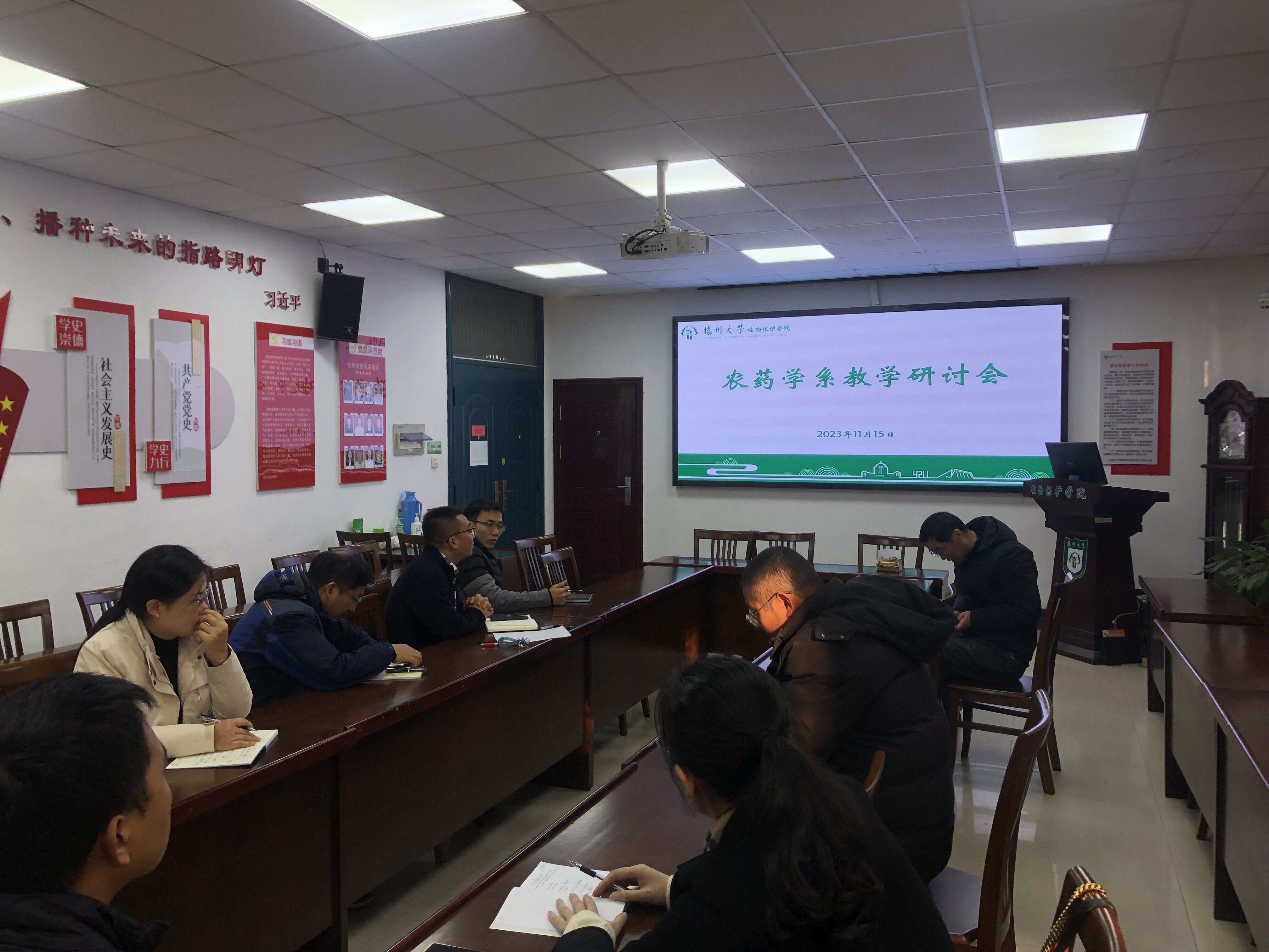 11月15日下午,农药学系在院107会议室召开教学研讨活动,着重就智慧植保耕读基地建设、如何借助耕读基地开展实践教学以提高本科生的实践动手能力等问题进行了研讨。