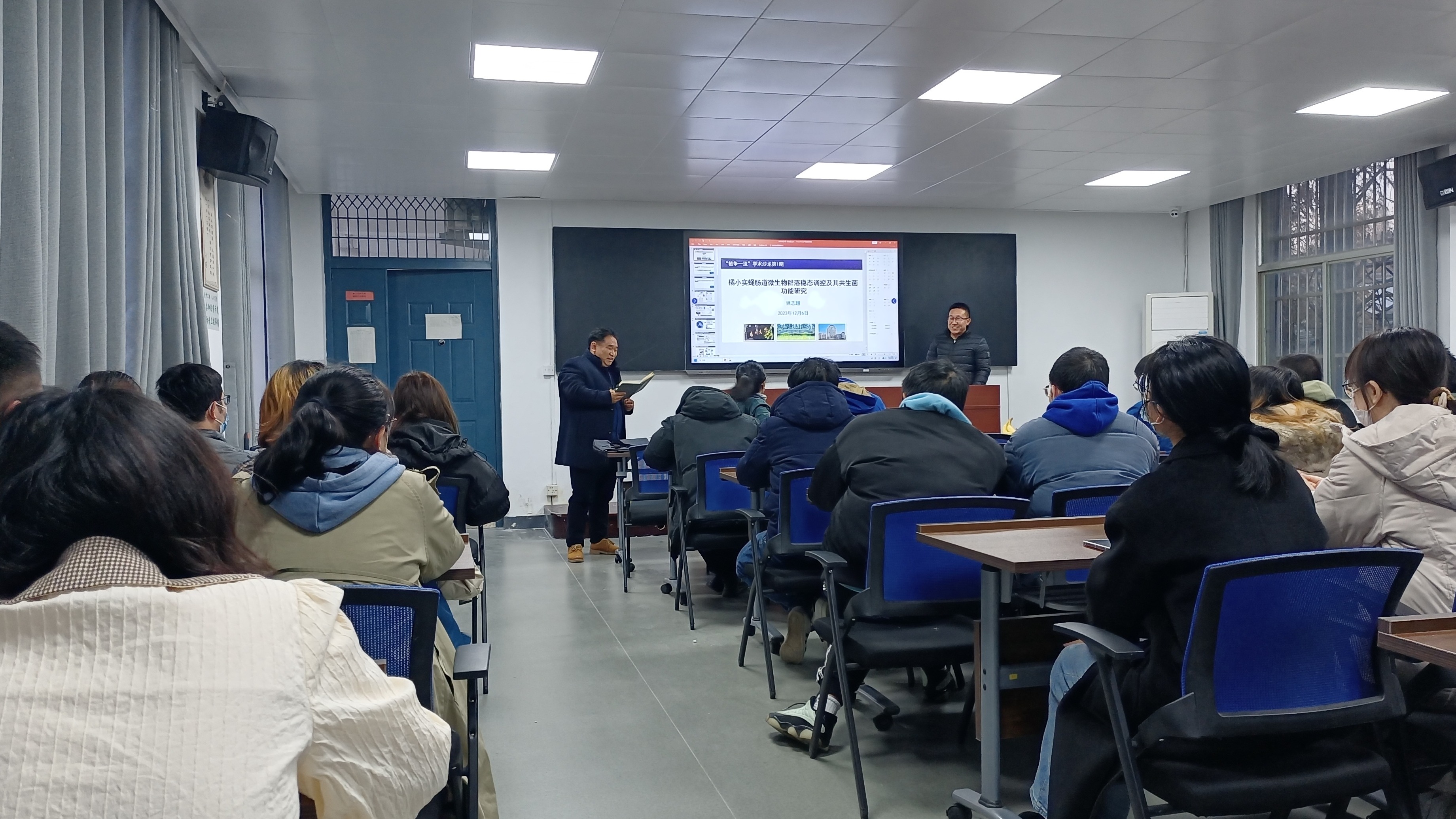 12月6日,我院“植争一流”学术沙龙在学院236会议室举行,昆虫学科青年教师姚志超教授做了题为“橘小实蝇Imd免疫信号通路为其肠道共生菌建立“保护区”的调控机制”的报告。此次学术沙龙由院青年教师发展中心主任戈林泉教授主持,刘景澜副院长及学院40岁以下青年教师、博士后及博、硕士研究生共70余人参加本次学术沙龙。