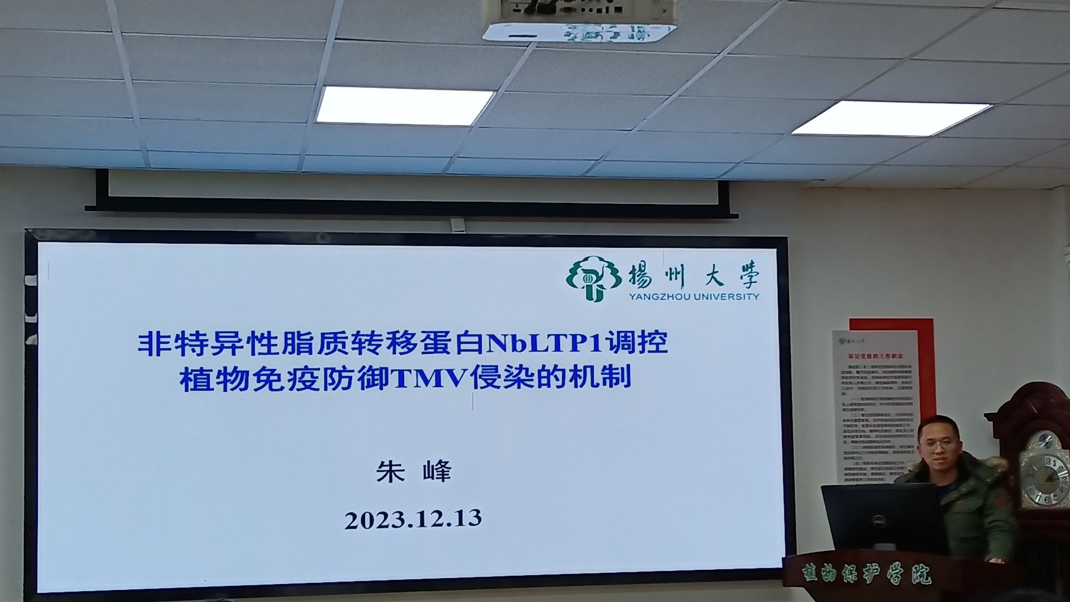 朱峰博士就病害绿色防控技术、非特异脂质转移蛋白如何调控植物免疫防御病毒侵染的机制等方面,分享了最新的研究结果。报告结束后,朱峰博士与参会师生进行了热烈的交流讨论,并就学术论文的构思和撰写、约稿和投稿等进行了分享。