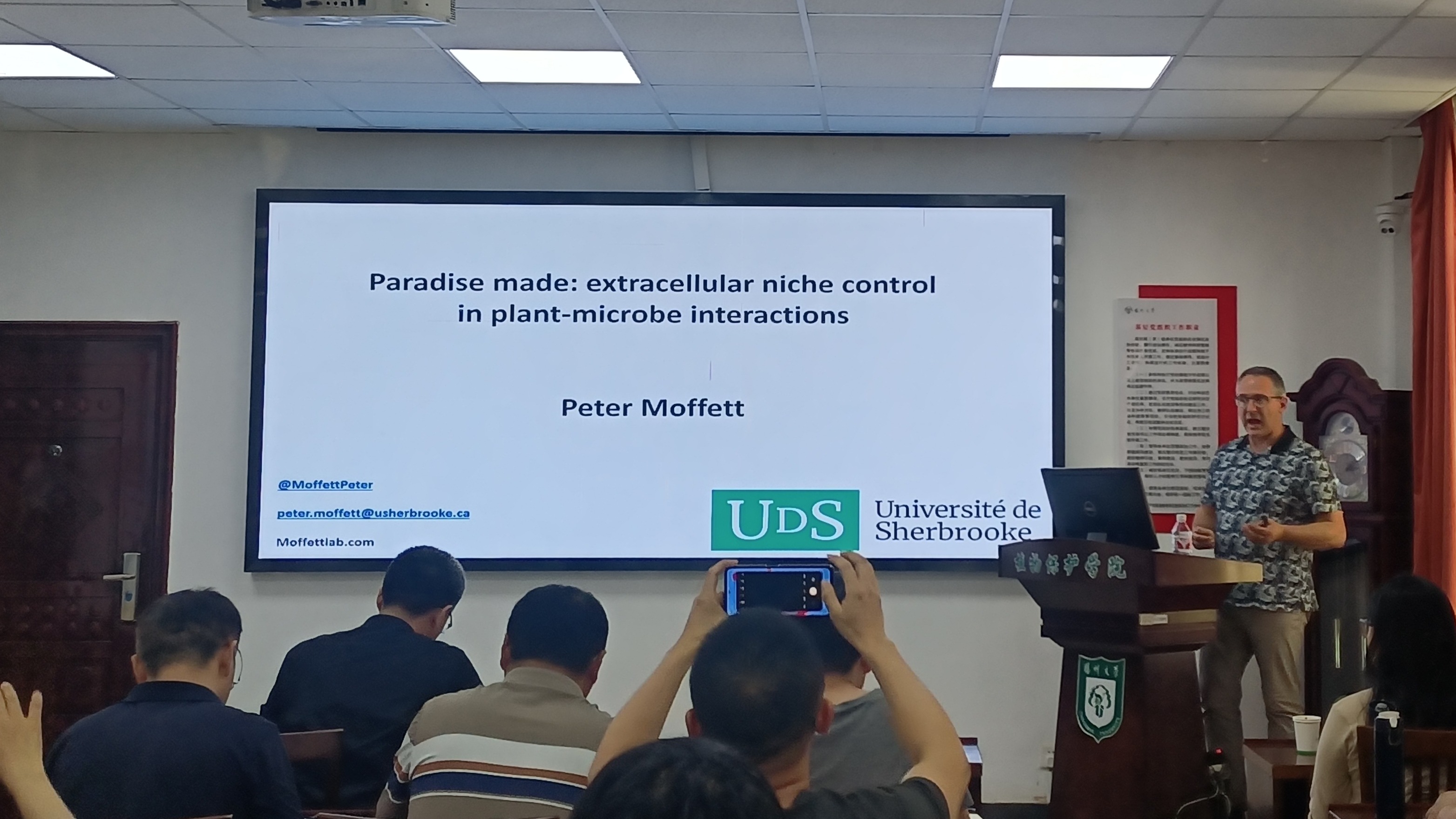 5月23日,植物保护学院“保绿兴农”学术大讲堂系列讲座于学院107会议室举行,加拿大舍布鲁克大学Peter Moffett教授和南京农业大学陶小荣教授为大家带来“Building a niche: How pathogens create favourable environments for growth”和“NLR免疫受体介导的病原识别和抗性机制”的学术报告。报告会由陈孝仁教授主持,学院师生聆听了此次报告会。