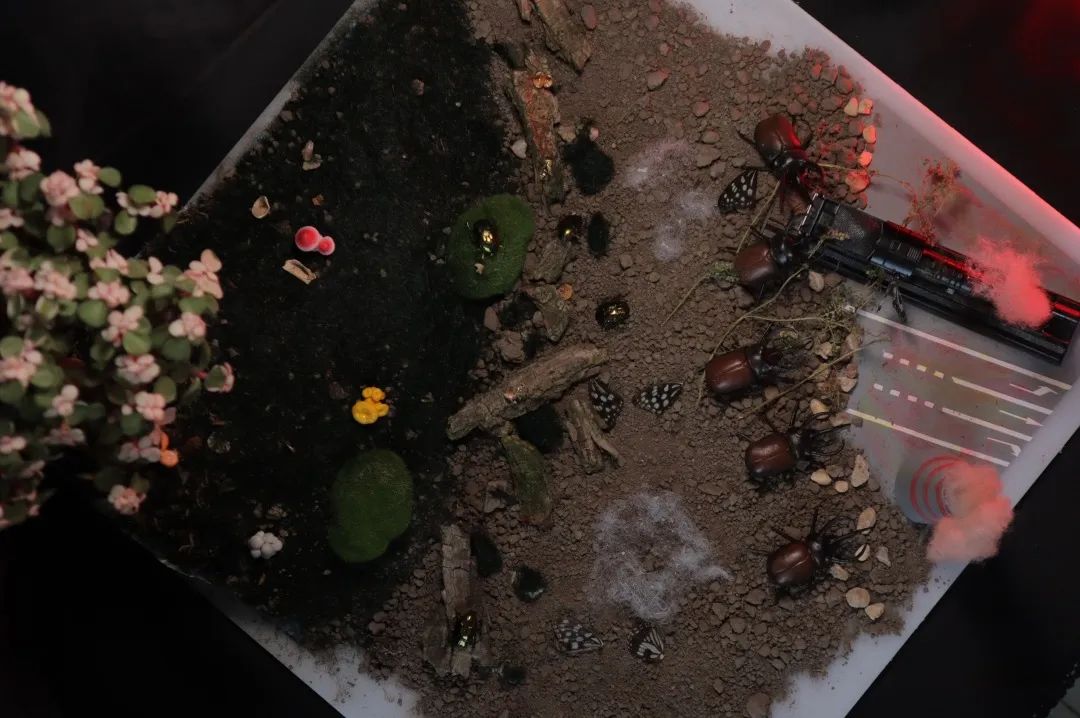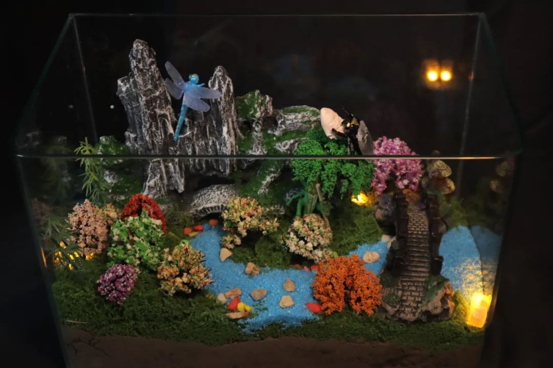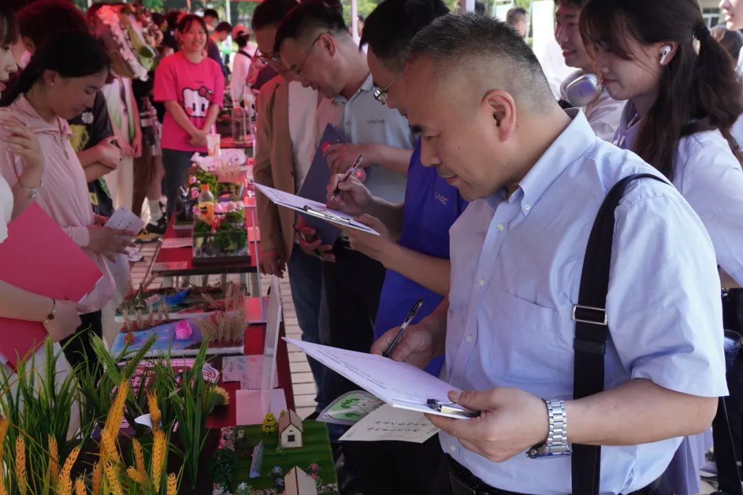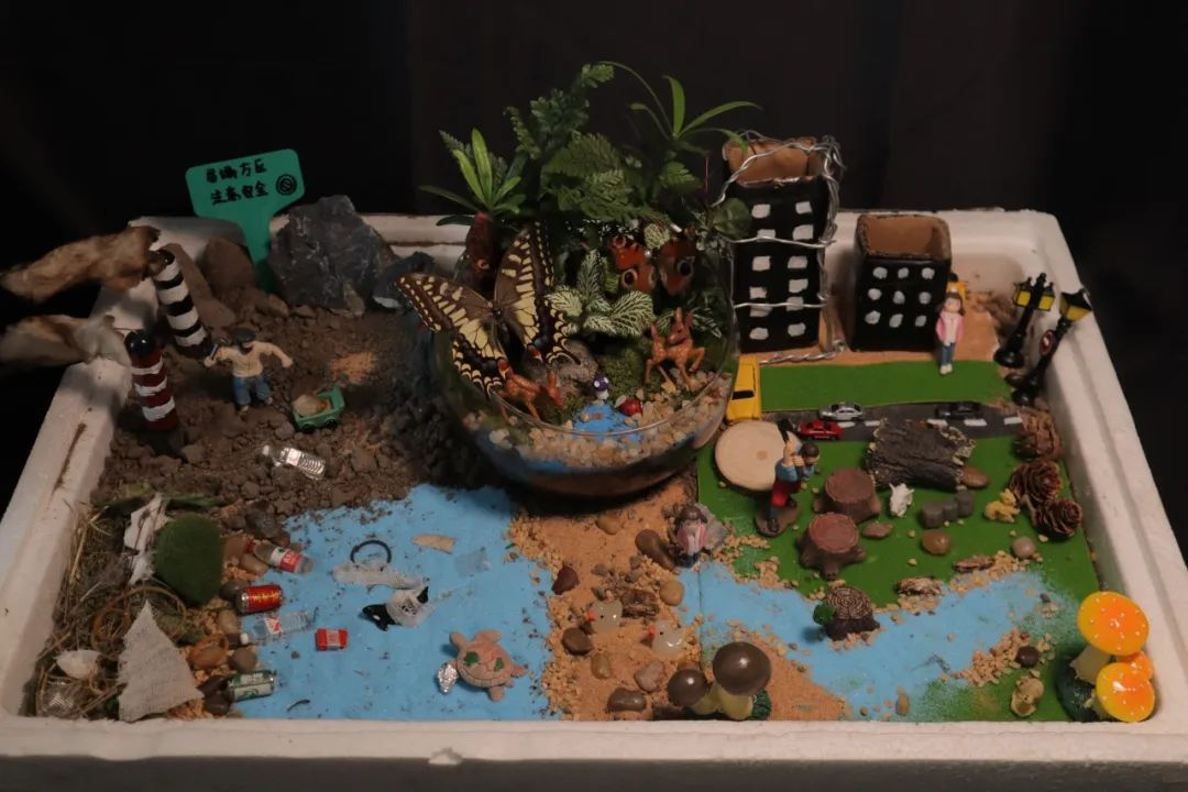 本次大赛有微景观大赛、生态瓶制作大赛、昆虫标本制作大赛、昆虫标本手绘制作大赛四个部分,并且还有昆虫美食区和病虫草嗨市集两个活动区,选手们对各自作品进行介绍,领导、嘉宾、评委对作品进行点评打分,其他同学也为自已喜欢的作品进行投票,整个活动热闹非凡。