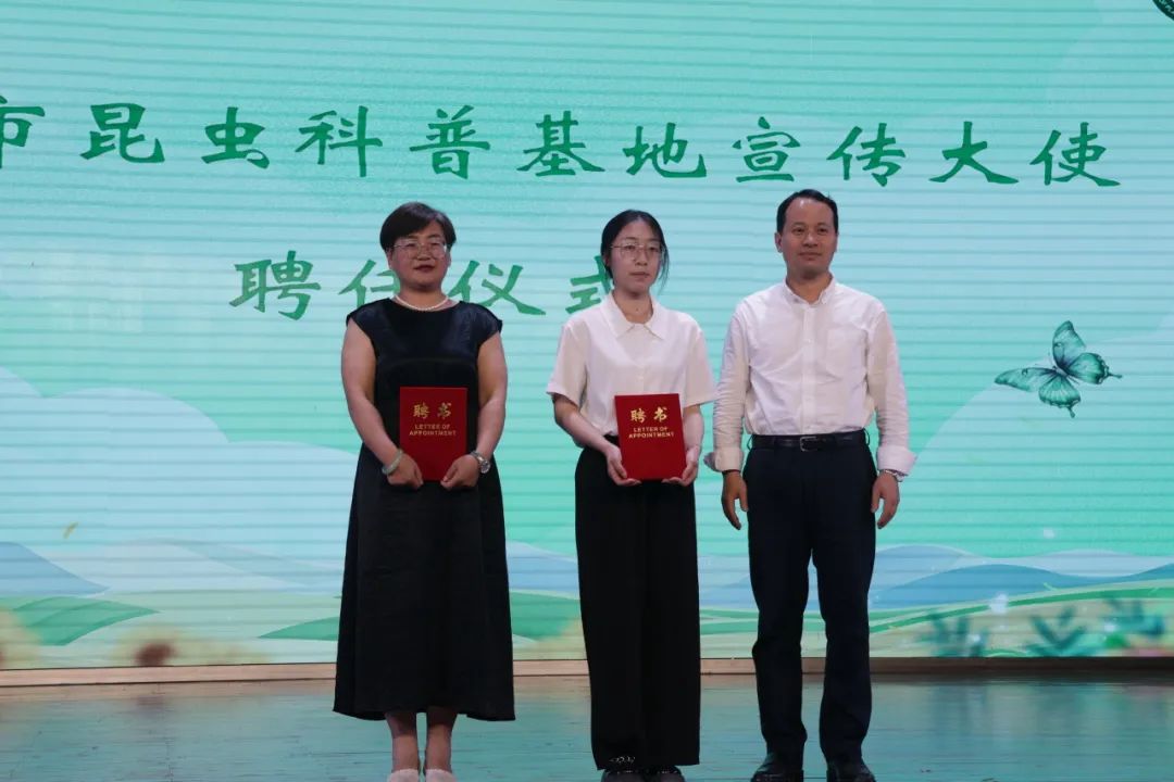 ▲王承堂副校长为扬州市昆虫科普基地宣传大使颁发聘书
