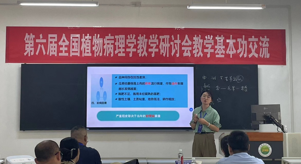 本次会议以“创新植物病理学教学,培养复合型智能人才”为主题,组织开展了多样化的教育教学示范与交流活动。在青年教师教学基本功交流环节,共有来自全国多个院校的31位青年教师参赛,董京萍、朱峰老师分别以“葫芦科病害”与“烟草病毒病”为教学内容参赛并分别获得一等奖和三等奖,充分展示了我院青年教师的教学能力与专业风采。