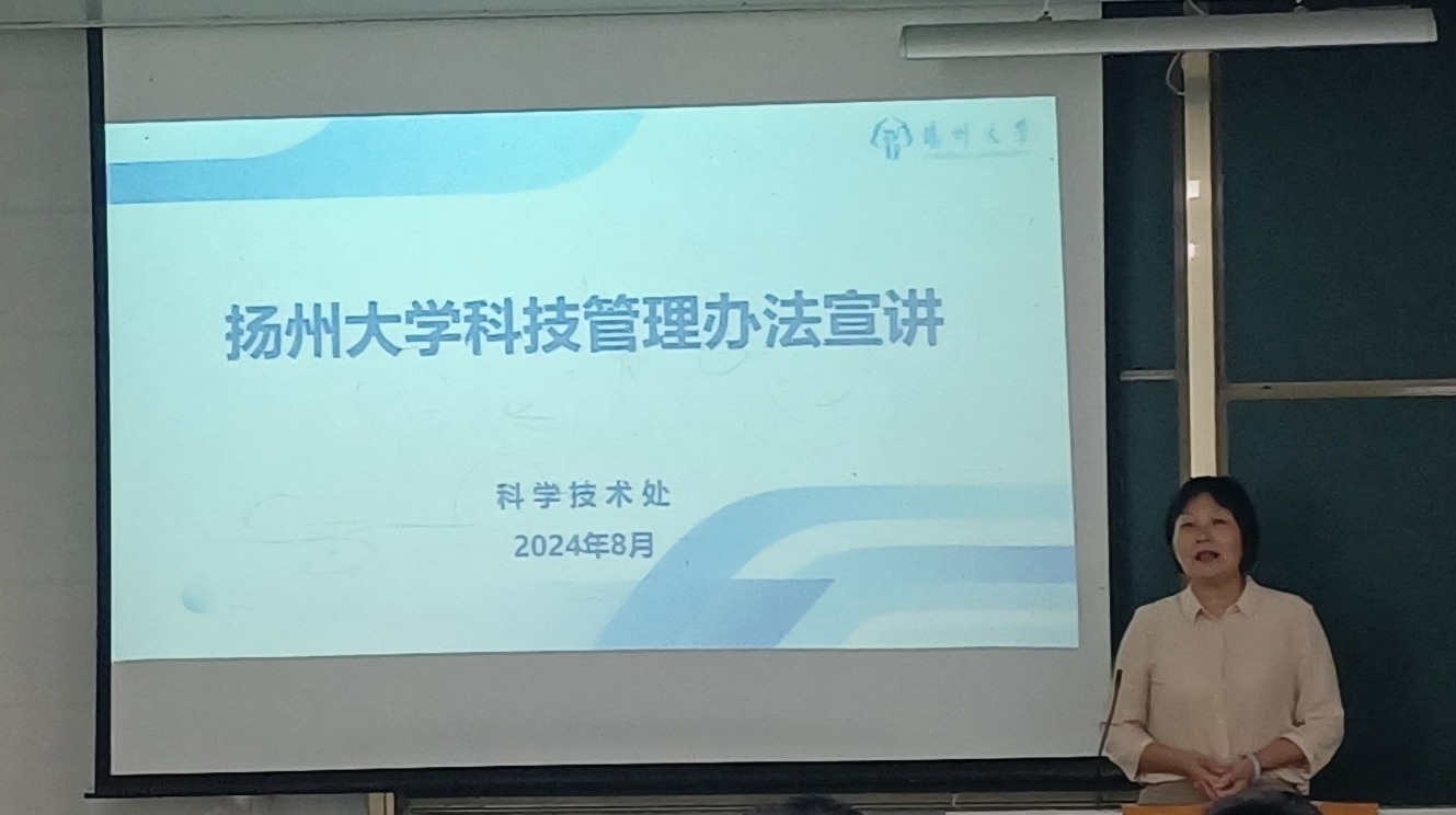 9月18日,我院在文汇路校区23号楼109会议室召开教职工大会。会议邀请学校科学技术处处长刘芳进行科技管理办法专题宣讲。会议由院长杨国庆主持,全院教职工参会。