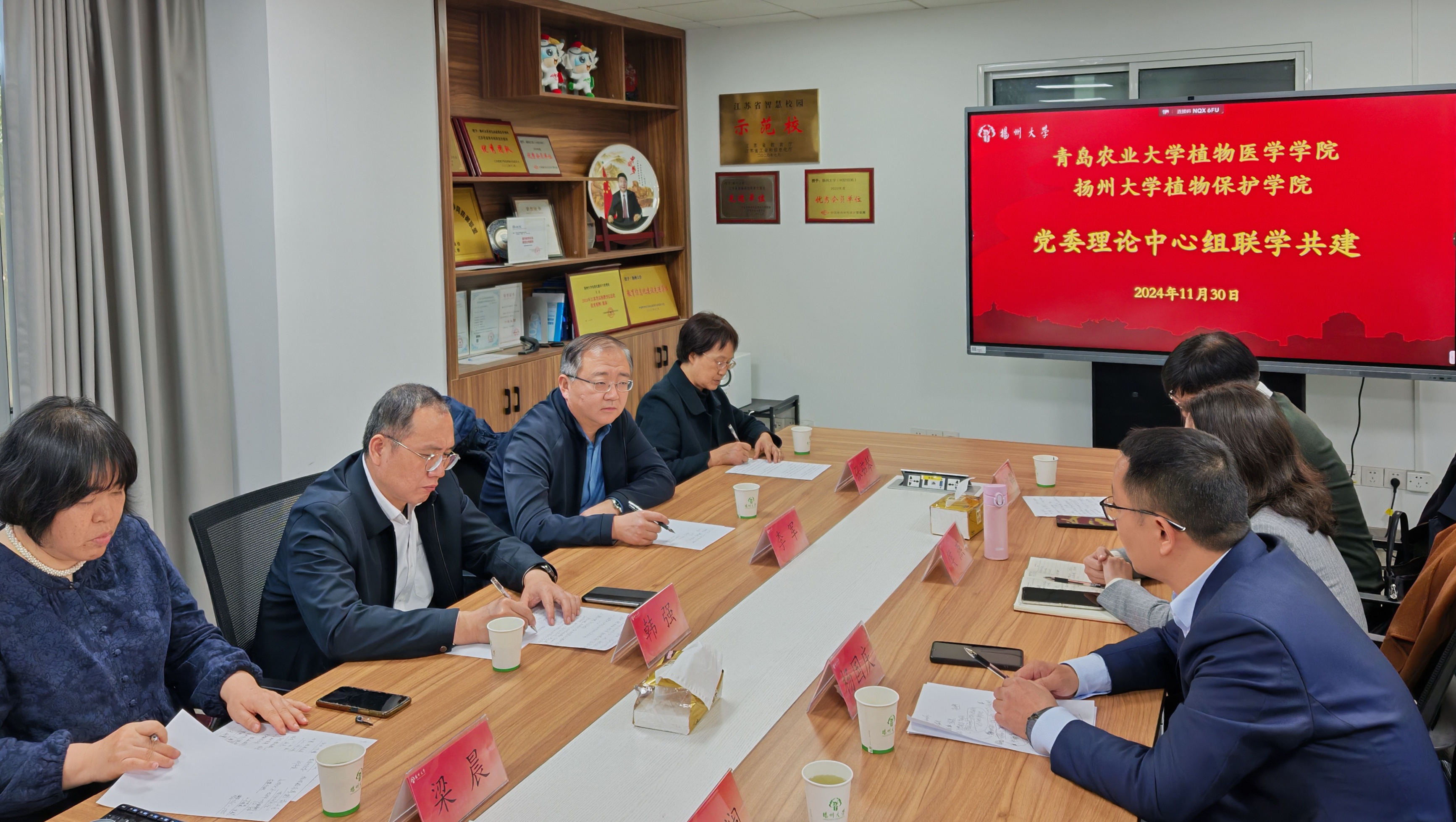 11月30日,青岛农业大学植物医学学院党委一行来校参加“第三届江苏省研究生精准植保科研创新实践大赛”,期间两家学院党委理论中心组成员围绕“习近平给中国国际大学生创新大赛参赛学生代表的回信”精神学习开展联学共建。