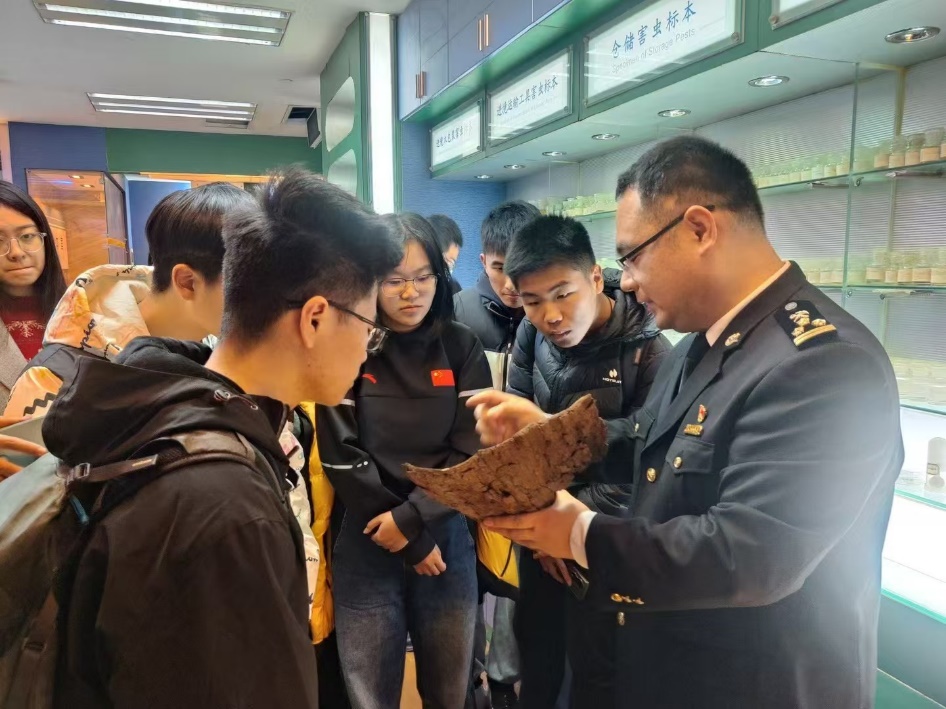 扬州大学2024年本科教学节之际,为进一步加强24级植保新生的专业实践教学环节,培养和提高学生综合运用所学的基本理论、基本知识和专业认知能力,11月27日,植物保护学院24级植保专业新生共143人在副院长刘景澜老师、院教研中心朱峰老师、班主任纪兆林、张坤、陆明星、毕洪论等10位老师的带领下,赴扬州海关驻扬州港办事处(简称驻扬州港办事处)开展专业认知教育。扬州海关驻扬州港办事处任冰主任、扬州海关丁识伯科长等领导为本次实践提供了大力支持和帮助。