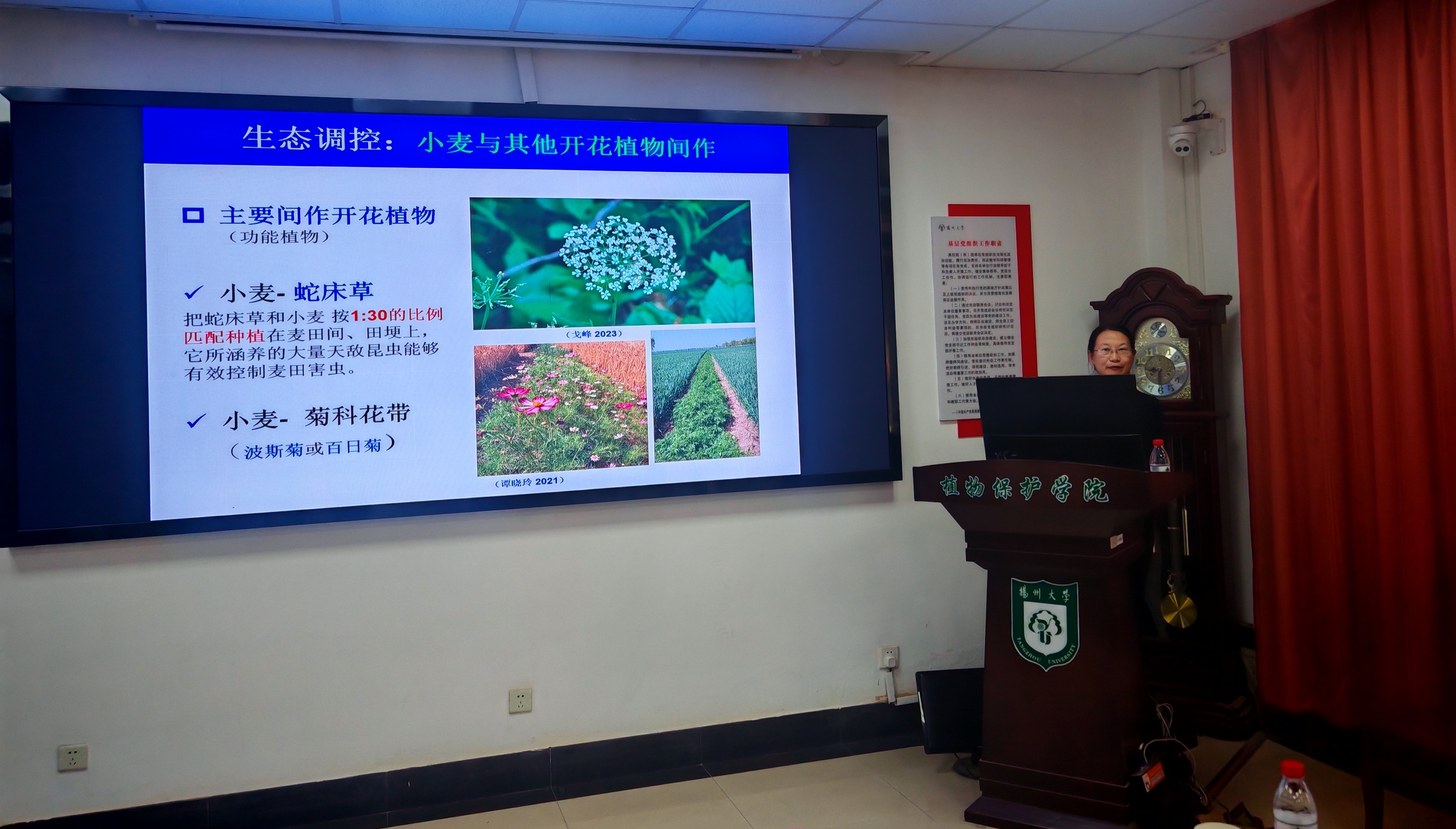 4月12日,“保绿兴农学术大讲堂”第二十六期在107会议室举行。中国农业科学院植物保护研究所陈巨莲研究员以“小麦害虫绿色防控技术研究”为题,系统分享了其团队在小麦抗虫分子机制与绿色防控技术领域的突破性成果,吸引了来自学院50余名师生与科技工作者参与。