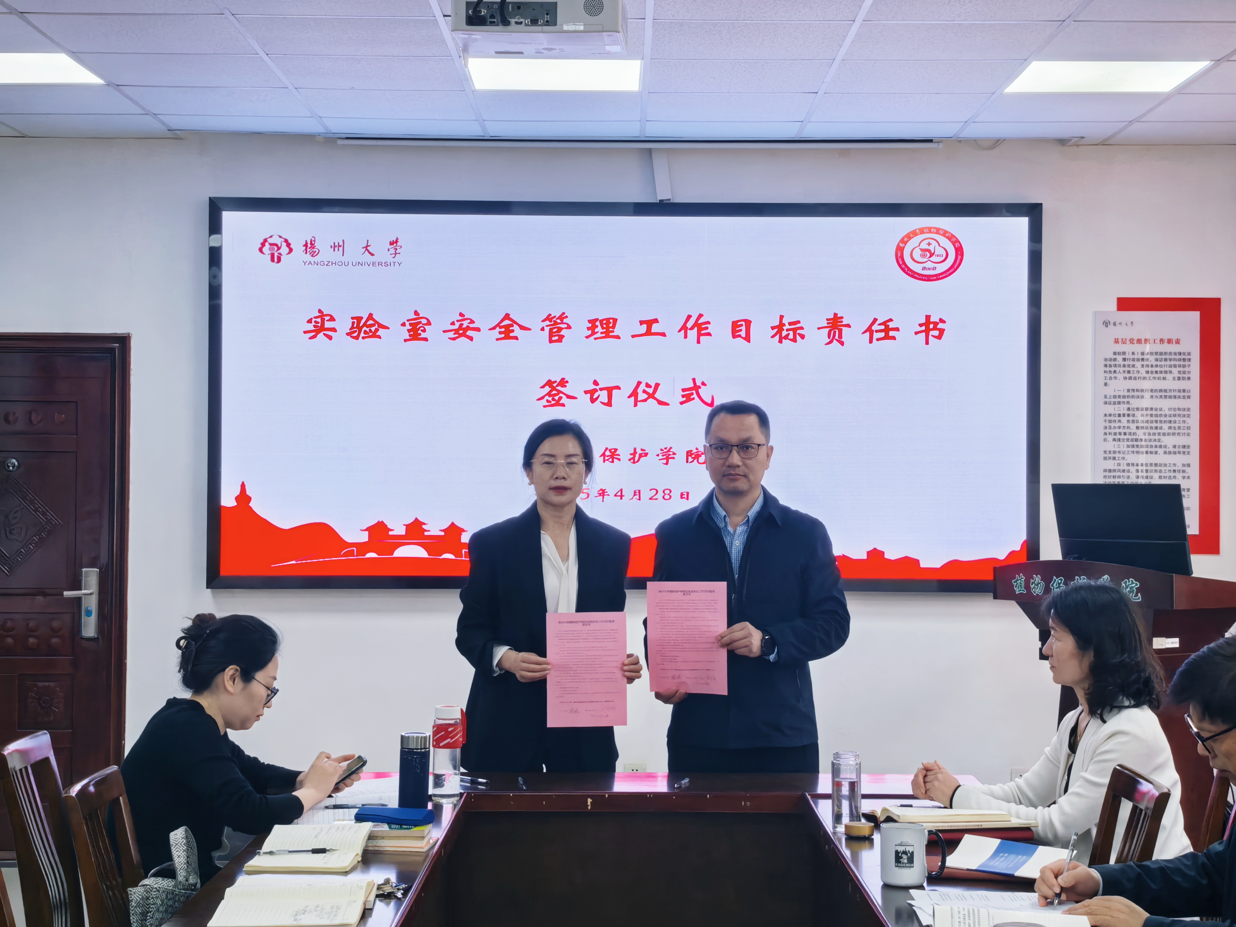 侯燕传达了第四届全国高校实验室安全专题培训及学校相关会议精神,要求党员干部及各条线负责同志进一步提高政治站位,强化风险意识,落实安全责任。学院实验室安全员董京萍通报了我院实验室安全检查过程中的一些共性问题。与会人员就强化实验室安全开展专题研讨。会上还举行了实验室安全管理工作目标责任书签订仪式。