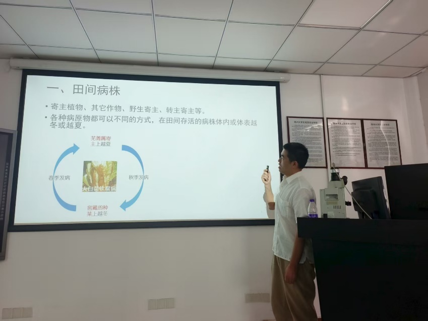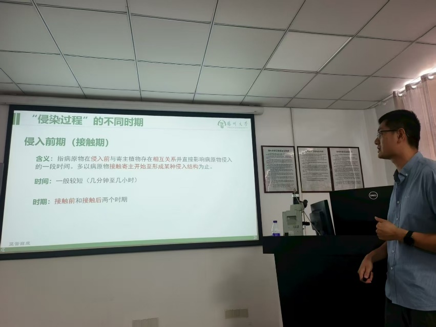 汇报教师均做了充分准备。吴涛老师讲解了《农业植物病理学》中水稻纹枯病的症状、病原、病害循环、发病影响因素及防治技术;罗书介老师介绍了《普通植物病理学》中的植物病害循环过程;张理航老师则围绕《普通植物病理学》阐述了病原物的侵染过程。