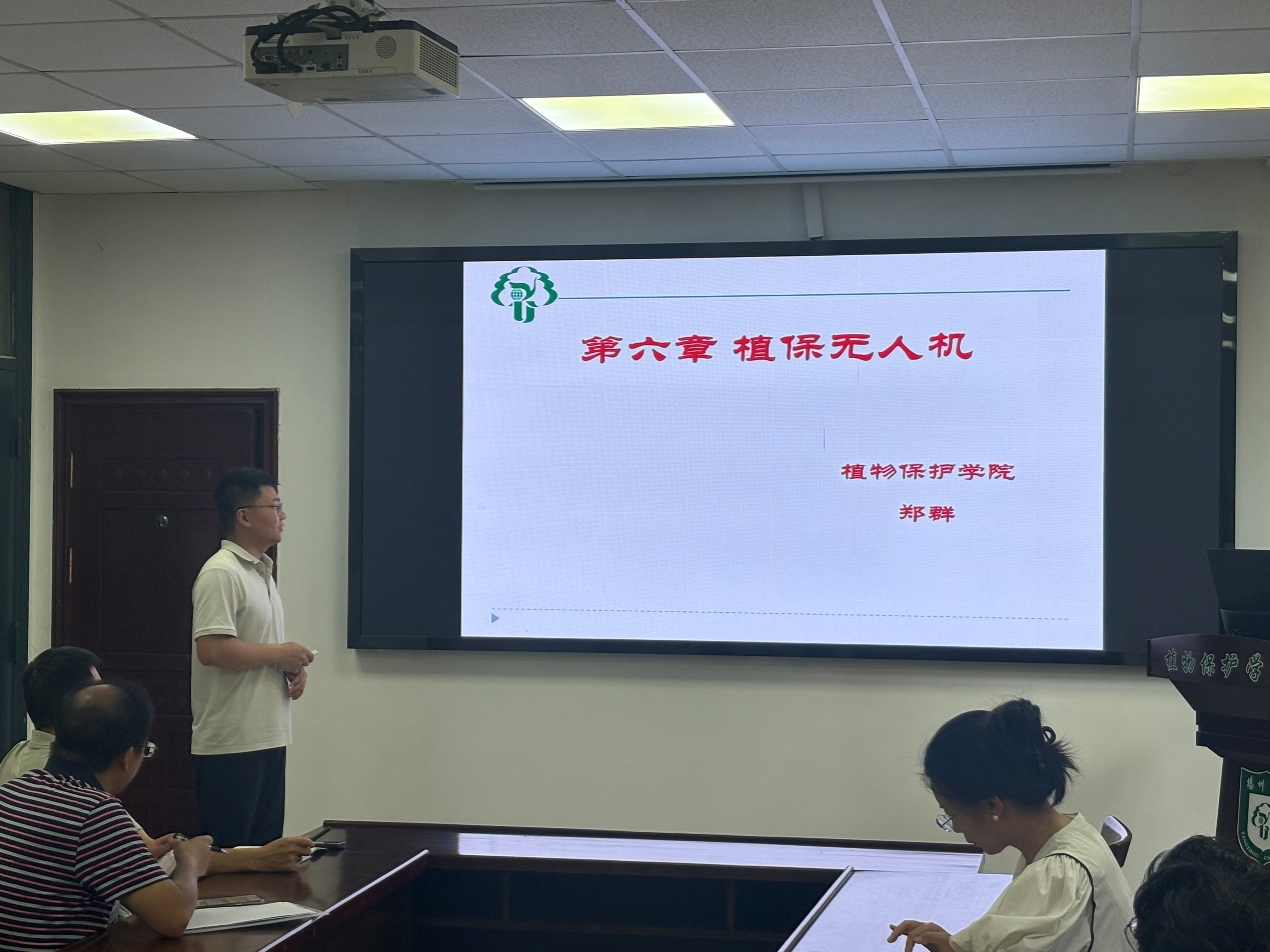 郑群老师选取《植保机械》课程的重要章节进行汇报,为大家介绍了植保无人机在国内外的发展及应用现状、植保无人机的组成及利用无人机进行植保作业的优缺点等,重点讲授了人工智能在植保无人机中的应用。