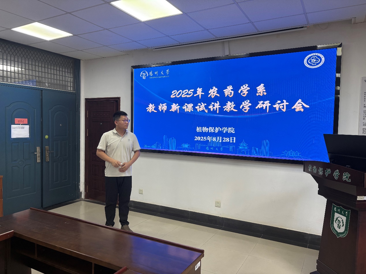8月28日下午,我院农药系在院楼107报告厅开展了“新教师新课试讲”教学研讨活动。农药系冯建国主任主持本次活动,植保专业青年教师郑群博士现场进行新课试讲。刘景澜副院长、王建军教授、陈小军教授和钱坤教授出席并进行教学技能指导,农药系全部教师到场观摩学习。
