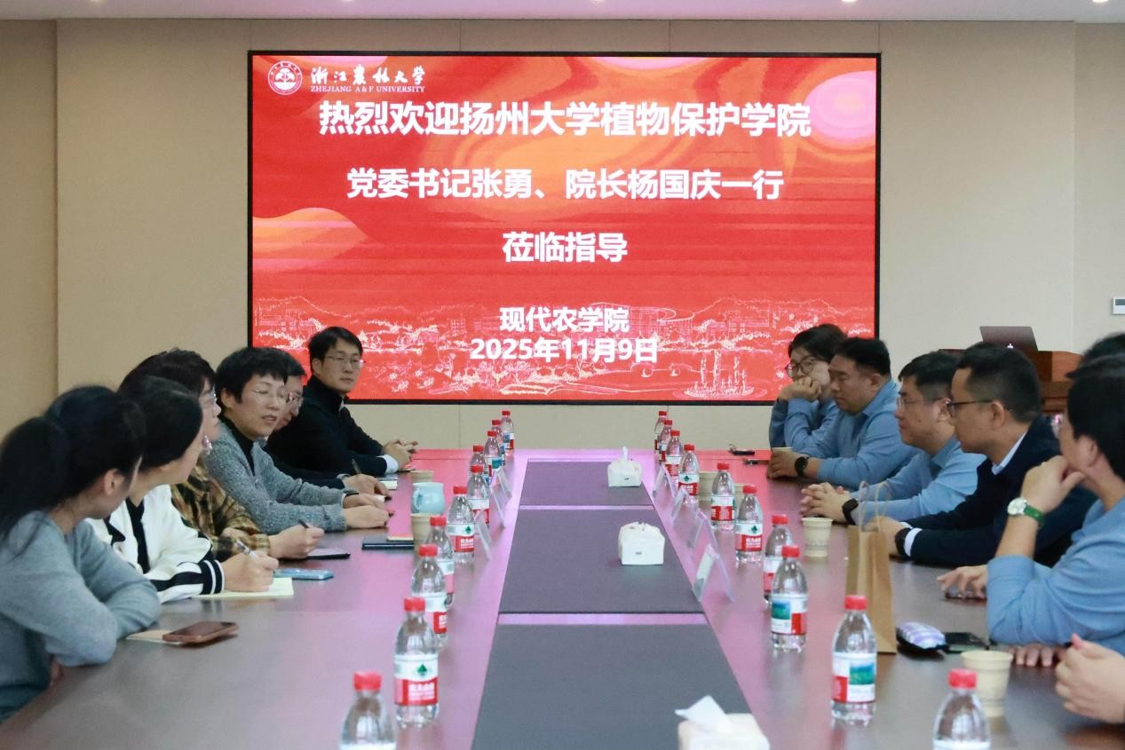 11月9日,我院党委书记张勇、院长杨国庆率队赴浙江农林大学现代农学院调研交流。浙江农林大学现代农学院党委书记梁卫玲及相关负责人、植保学科骨干成员出席了座谈会。