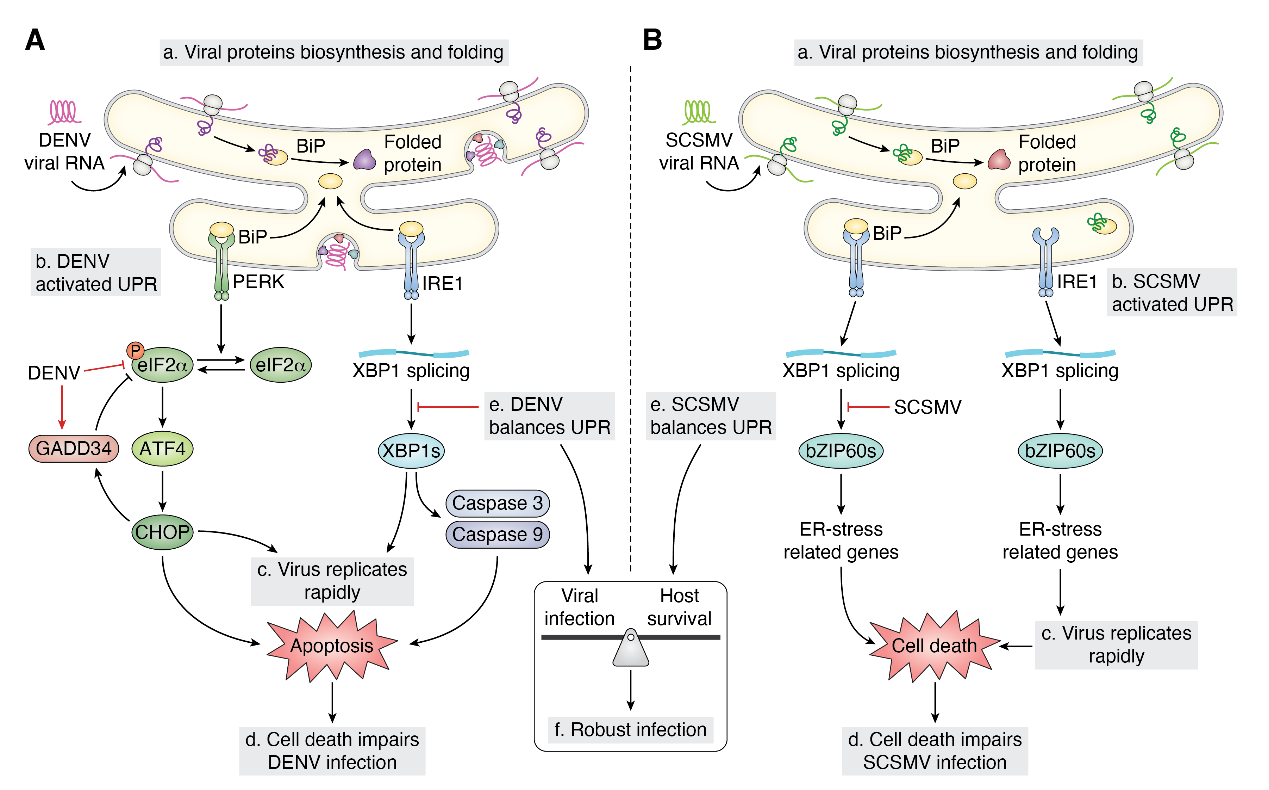 值得注意的是,本月10号,张坤副教授团队受到《Journal of Biological Chemistry》(国际自然指数期刊)期刊的邀请,就病毒与寄主UPR间的关系,发表题为“Hijacking the unfolded protein response (UPR) pathway: Balancing viral infection and host cell survival”的综述论文。在读硕士研究生陈浩宇和刘杜轩为本文的共同第一作者,张坤副教授与PeterMoffett教授为论文通讯作者。该综述细致归纳总结了病毒如何“劫持”并精细调控宿主内质网未折叠蛋白反应(UPR),并提出病毒在维持宿主细胞存活与自身最大化复制之间找寻微妙平衡的生存策略,还总结归纳了动物病毒与植物病毒间存在的差异。