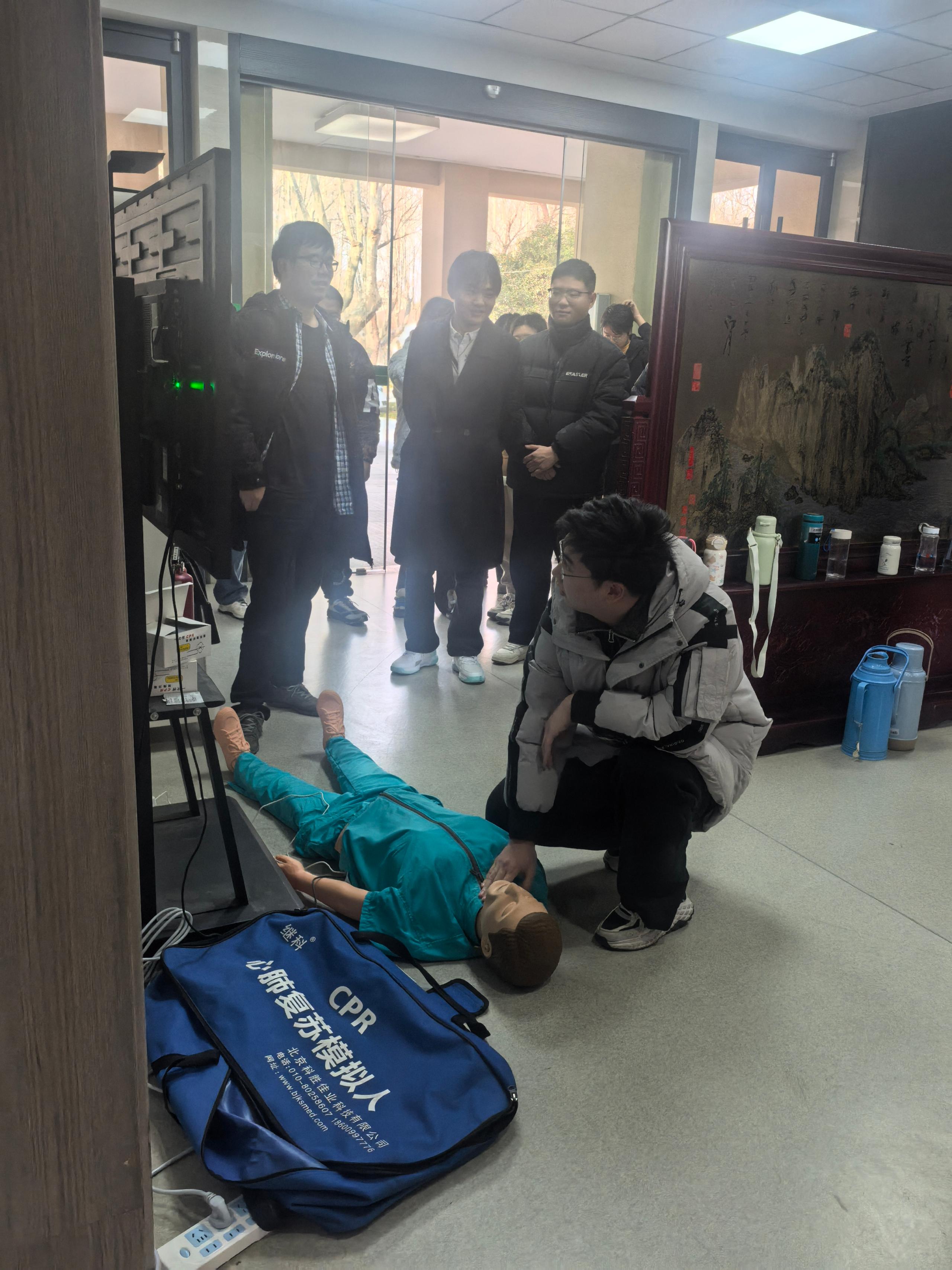 为切实提升研究生群体的安全防范意识和应急救护能力,2026年1月6日上午9时,我院于院楼正厅成功举办消防安全知识培训及心肺复苏演练活动。全体研究生新生积极参与。