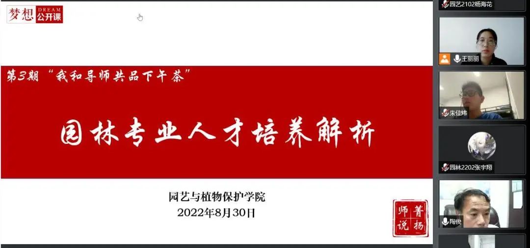 8月30日上午九点,我院举行了“ 我和导师共品下午茶”系列会议,这四场会议分别为植保、园艺、园林、生态专场,旨在让22级新生深入了解自己所学专业。下面,就让我们一起来看看这几场会议的内容吧!