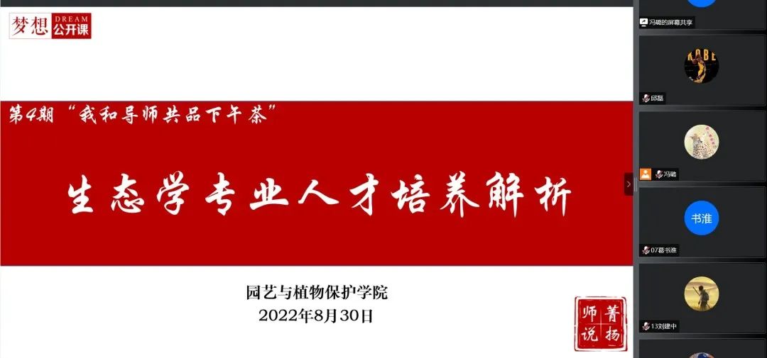 第四期的“我和导师共品下午茶”的主题是“生态学专业人才培养解析”,本次会议的主讲人罗云建老师从生态学是什么、学什么、学了能做什么三个方面给同学们展开今天的讲解。