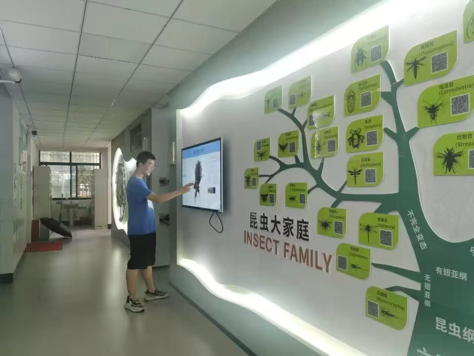 学生们可以通过点击观看各种新奇的昆虫标本,其中让人印象最深的莫过于可手动720°旋转观看的数字标本馆。这一设计提升了观众的互动体验,使学生对昆虫的特征更加深入了解。